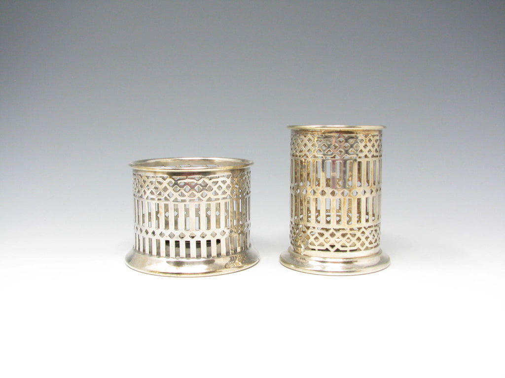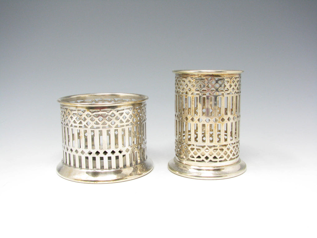 Antique Apollo Studio silver plated glass holders by Bernard Rice's Sons. Set includes 2 holders.