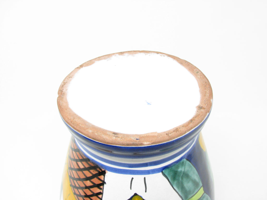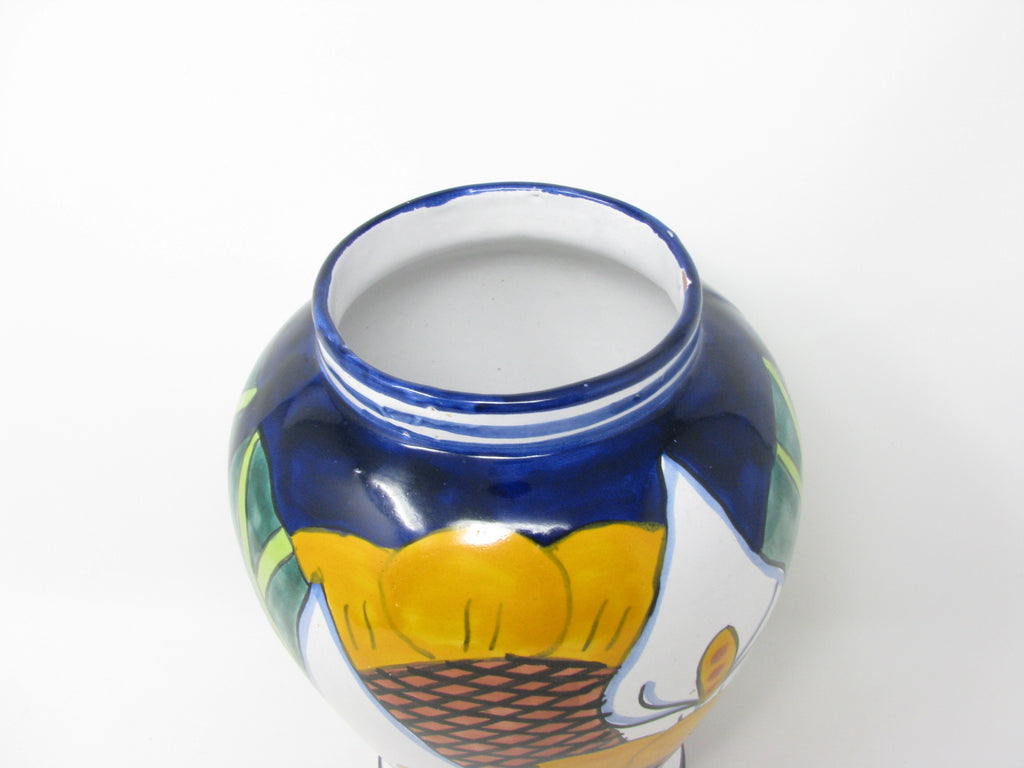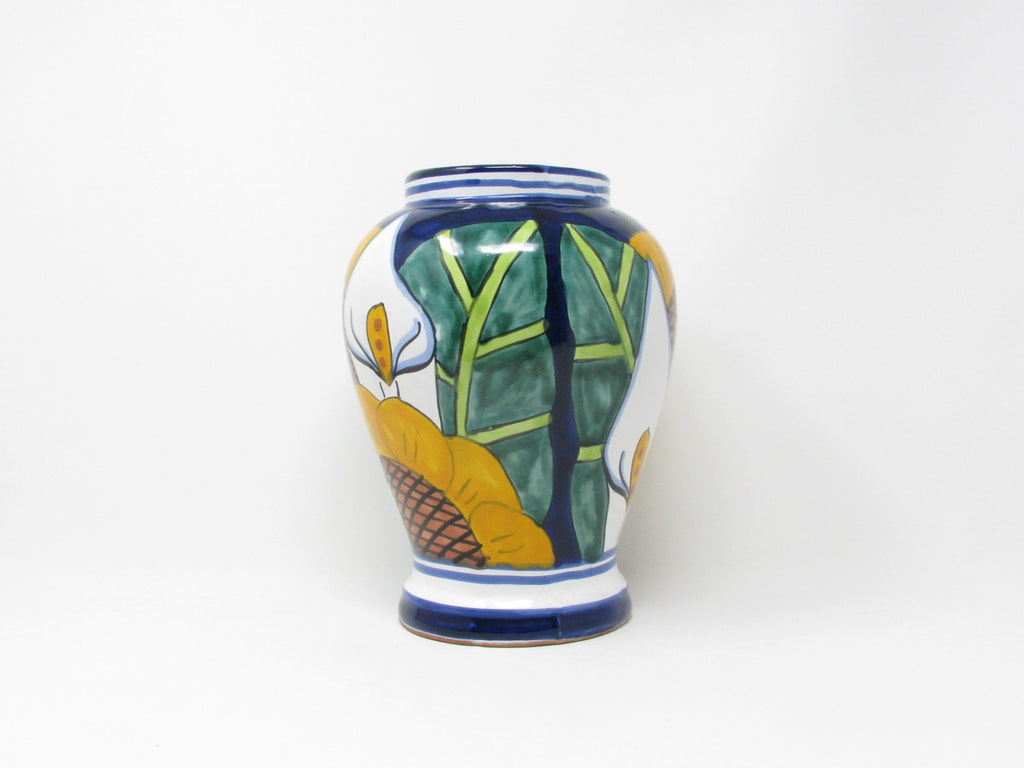 Vintage Talavera Mexican clay pottery vase with hand-painted calla lily pattern. Beautiful colors.