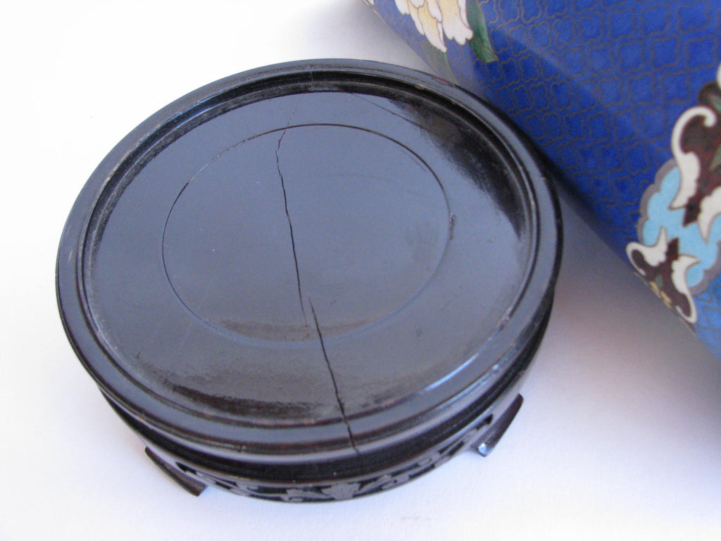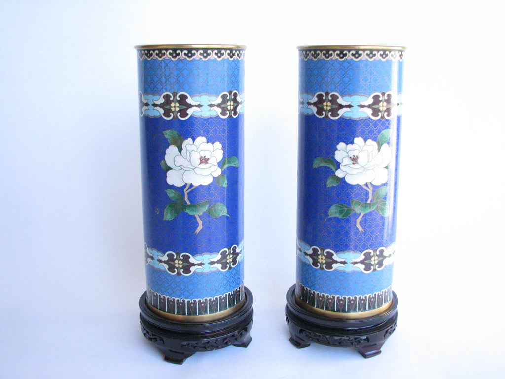 19th Century Cloisonne Enamel on Copper Vase on Rosewood Stand - a Pair