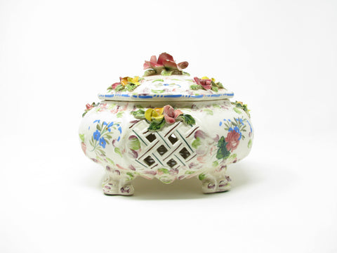 Vintage Italy Reticulated Ceramic Box with Capodimonte Style Floral Design