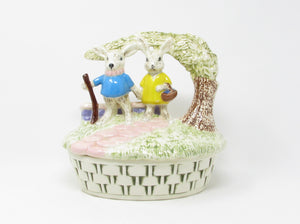 Vintage Lidded Ceramic Box Featuring Whimsical Rabbits by Atlantic Mold