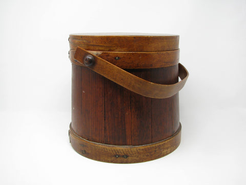Antique Primitive Firkin Lidded Sugar Bucket with Handle