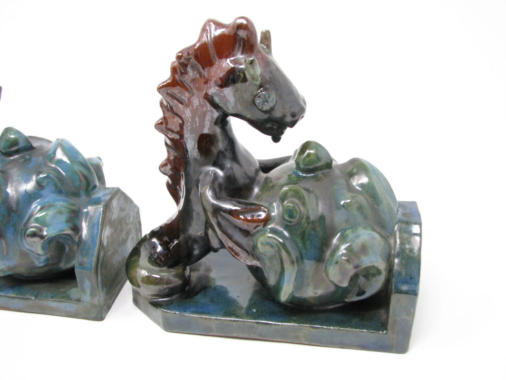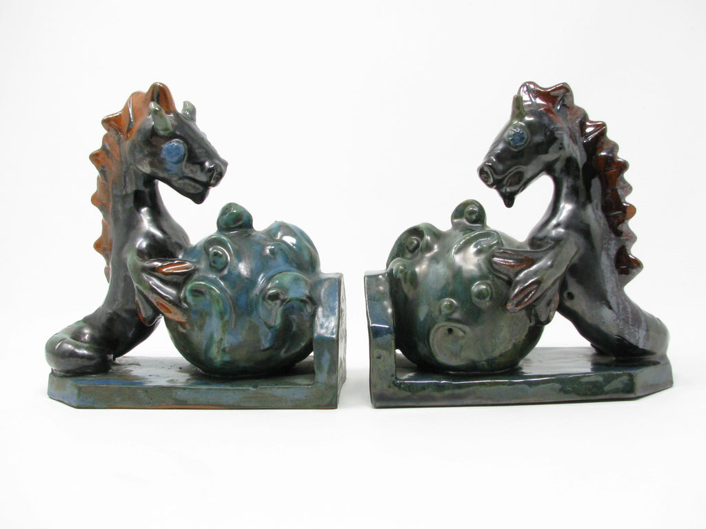 Antique Wiener Werkstatte Vienna Austria Style Pottery Seahorse Bookends - a Pair