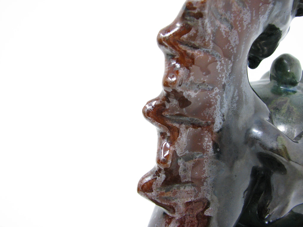 Antique Austrian pottery bookends with seahorse shape in the style of Wiener Werkstätte. Expressive design the likes of Hertha Bucher or Susi Singer. Set includes 2 bookends. From the estate of an extensive Austrian pottery collector.