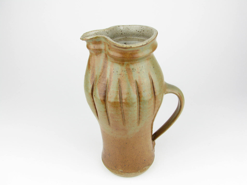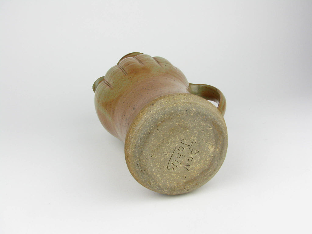 Vintage studio art pottery stoneware pitcher by Don Johns (1935-2017). Substantial functional pottery with lovely earthy glaze. Artist signature on bottom. Johns was an influential and respected potter, initially from the midwest and relocated to North Carolina.