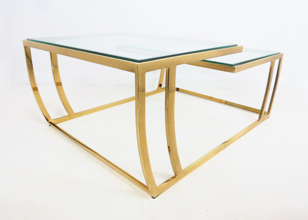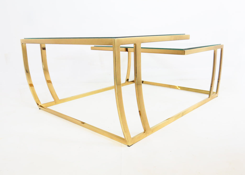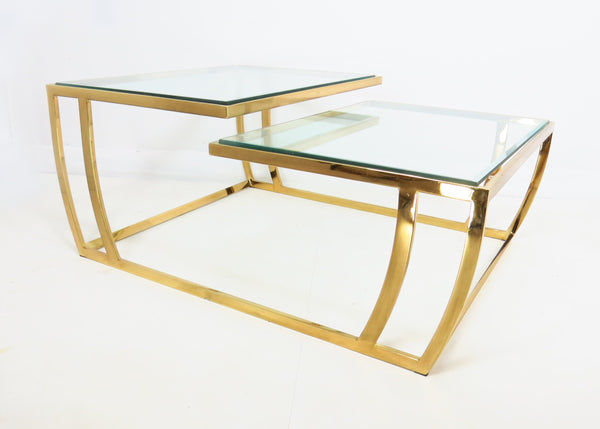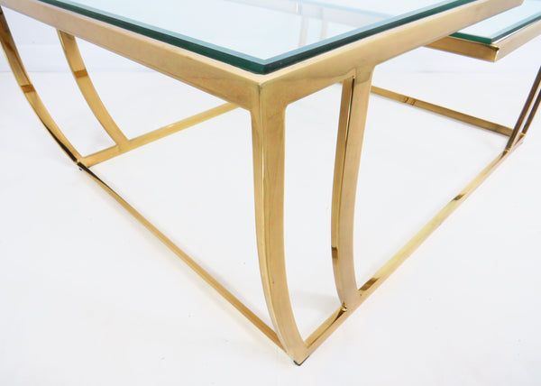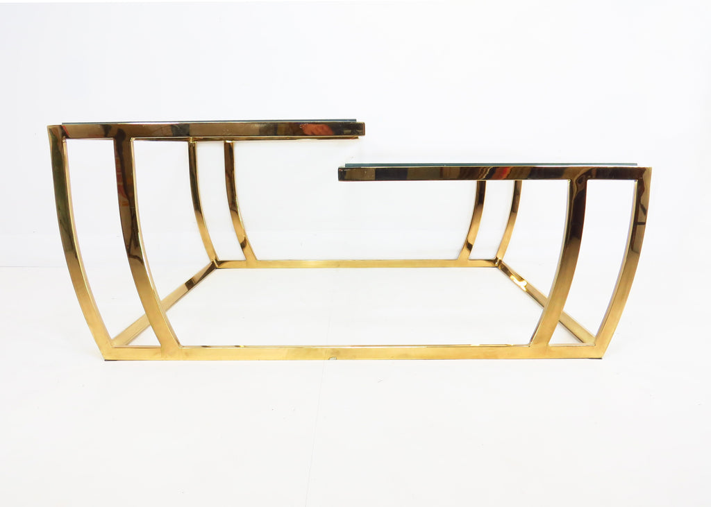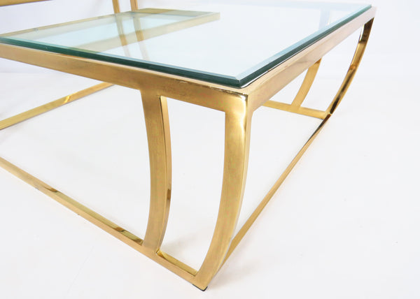 Vintage 1980s Brass and Glass 2-Tier Cocktail / Coffee Table