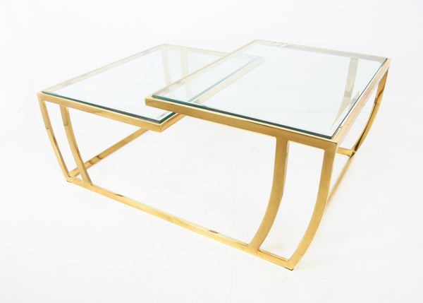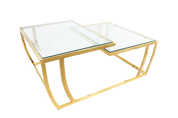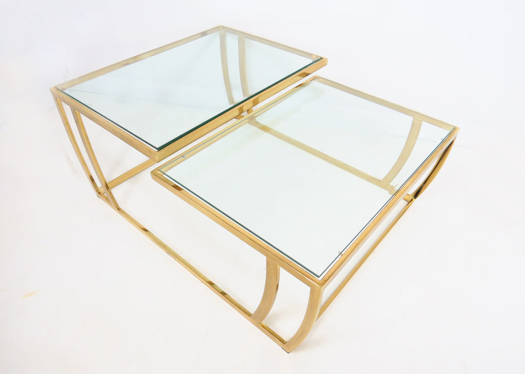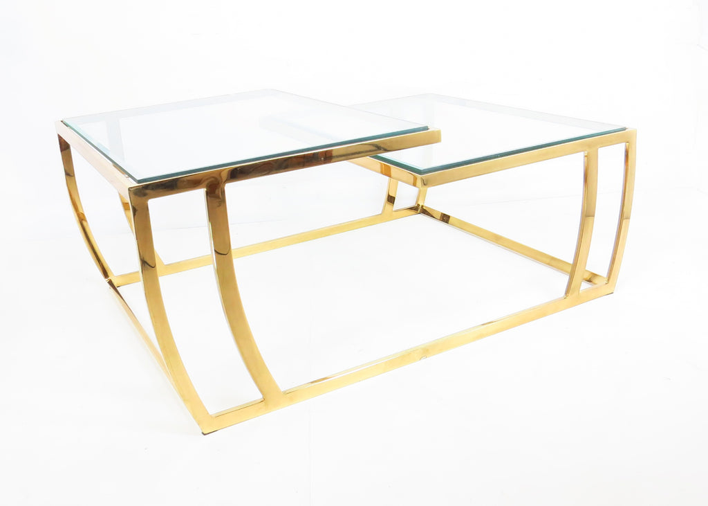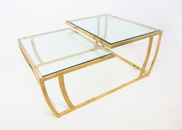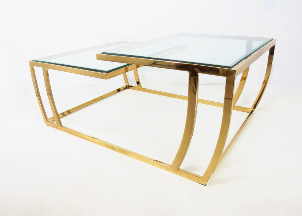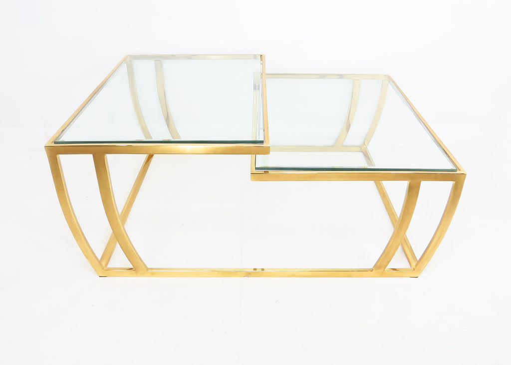 Vintage 1980s Brass and Glass 2-Tier Cocktail / Coffee Table