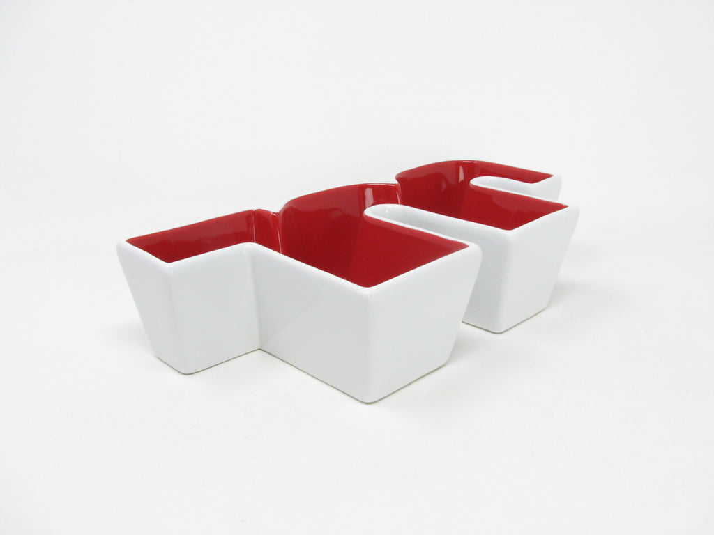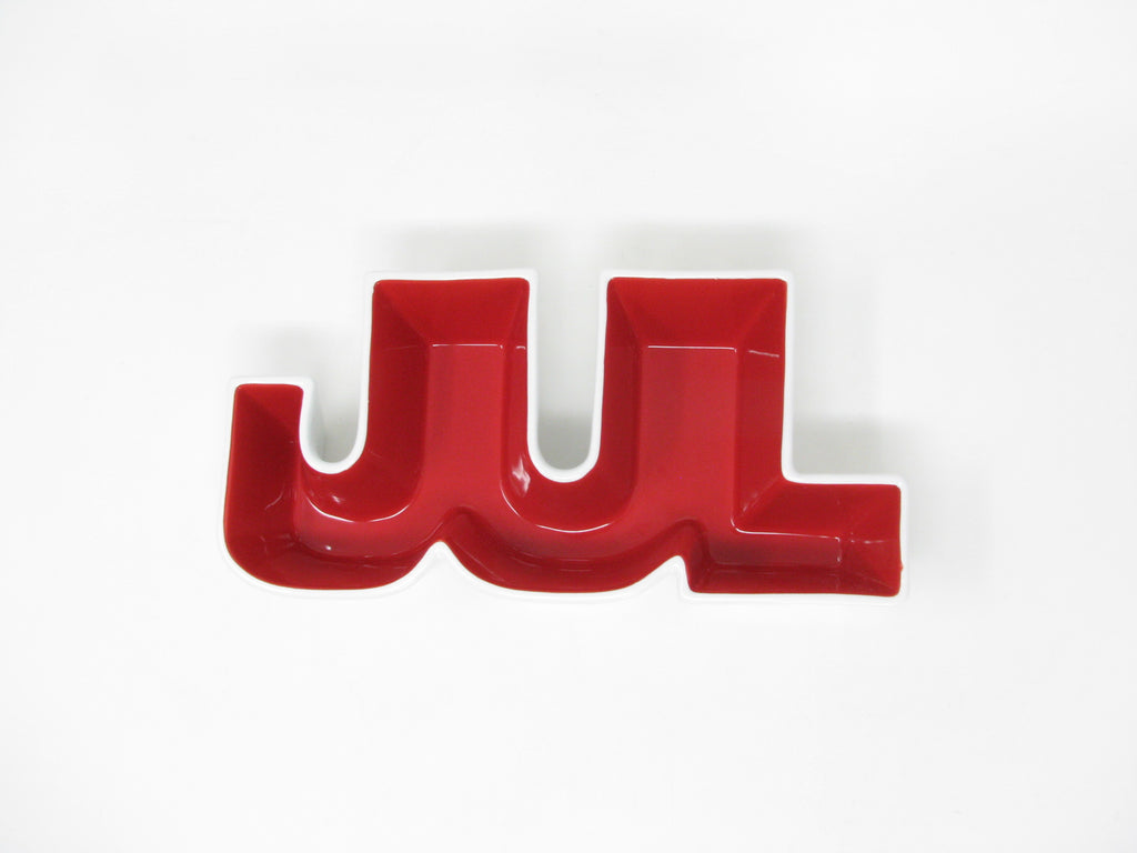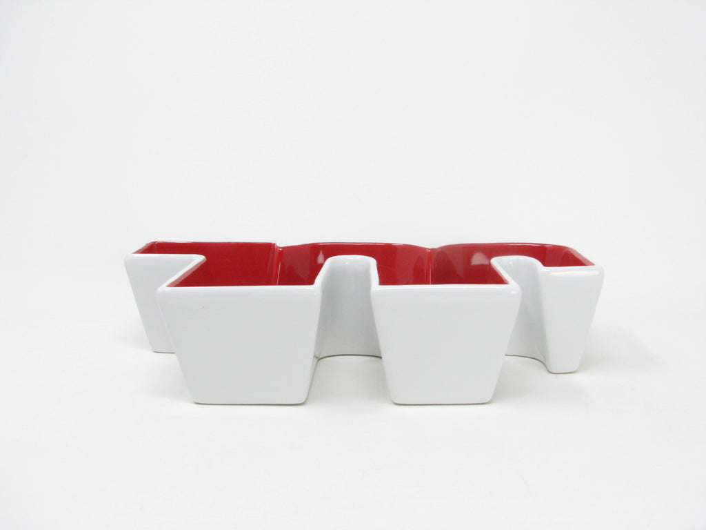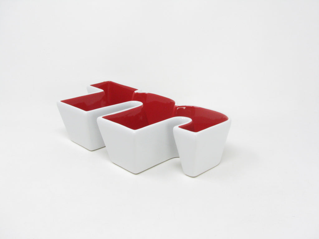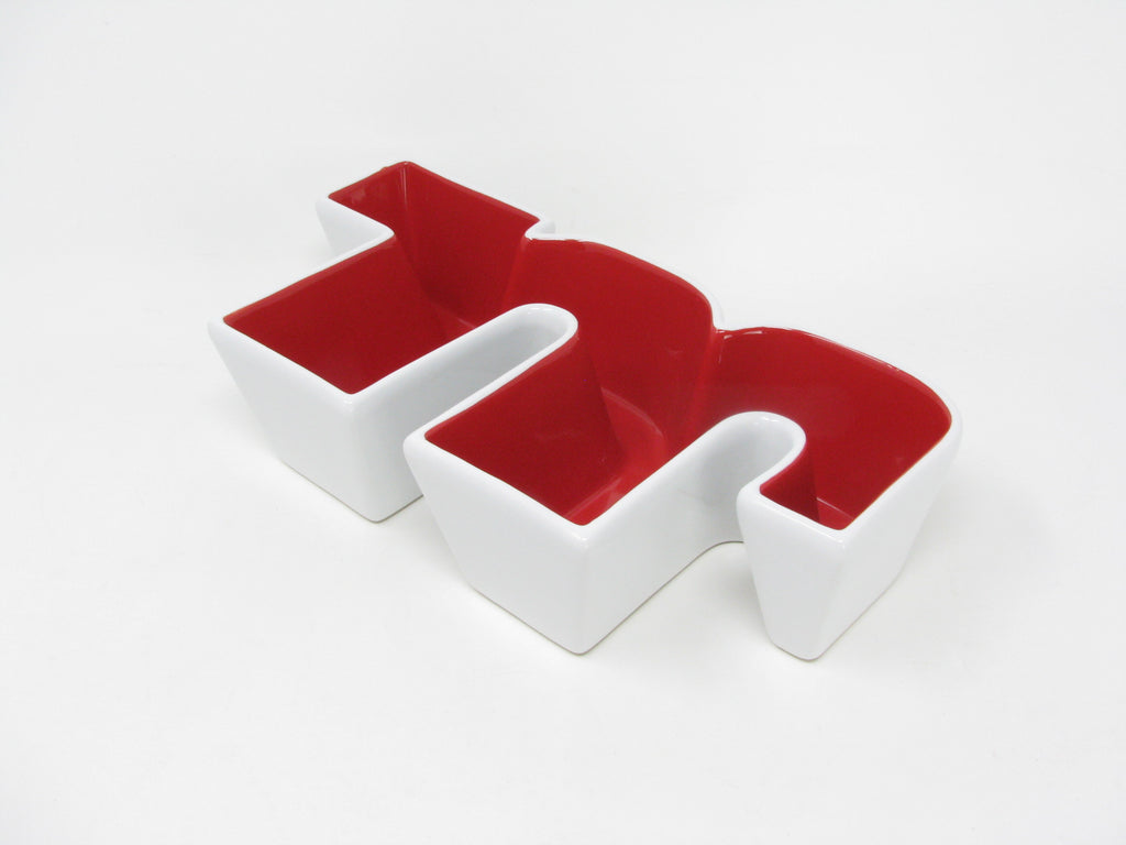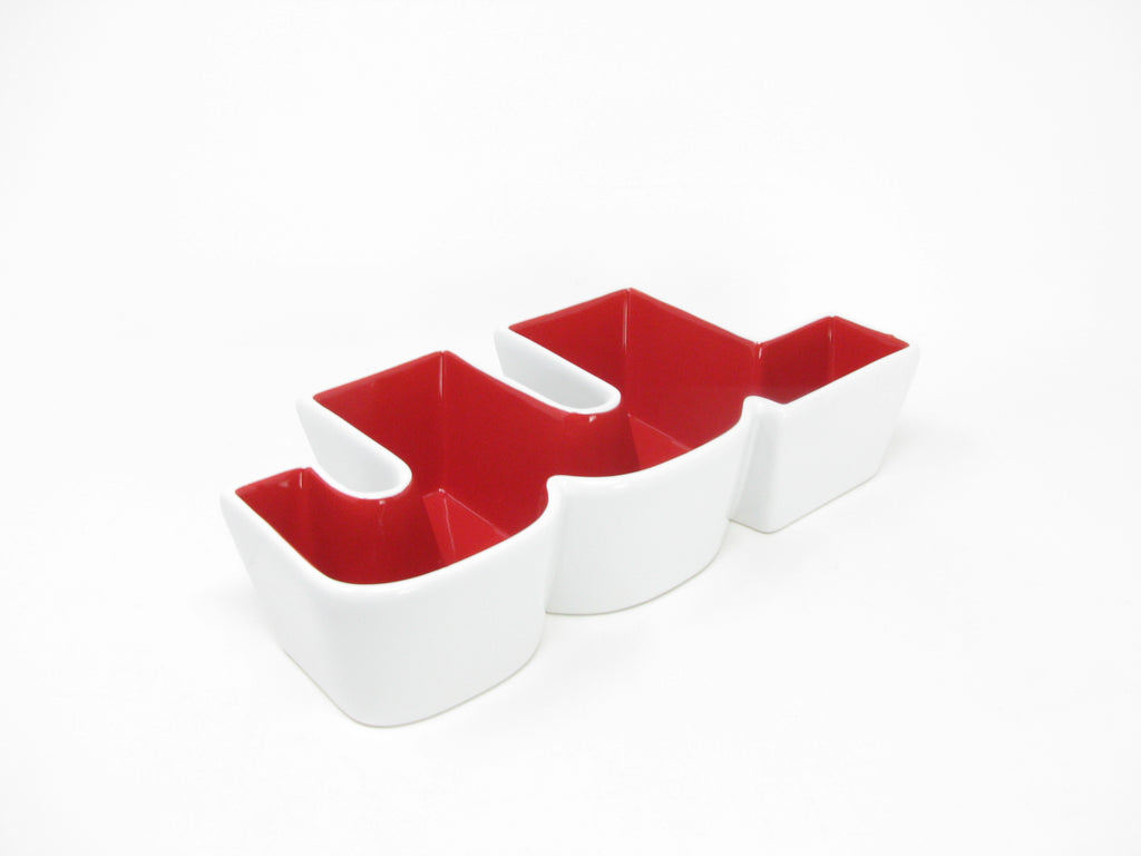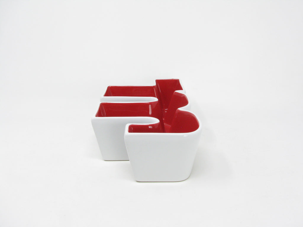Sagaform red JUL shaped ceramic candy, snack, or condiment dish designed by Ylva Olsson. JUL means Christmas in Swedish.