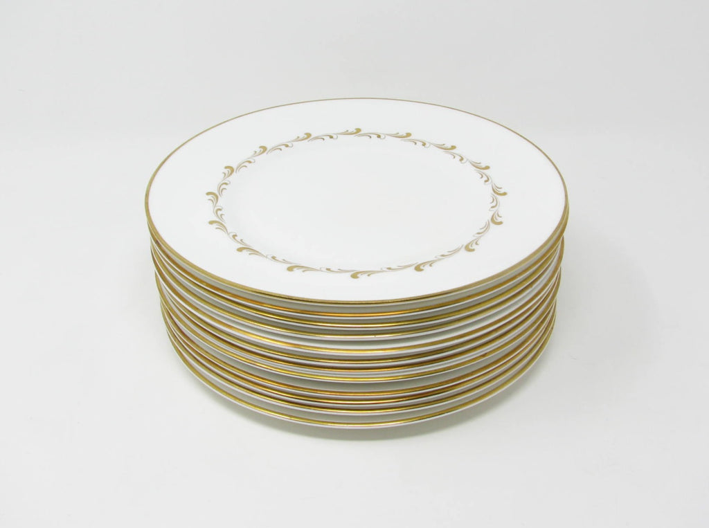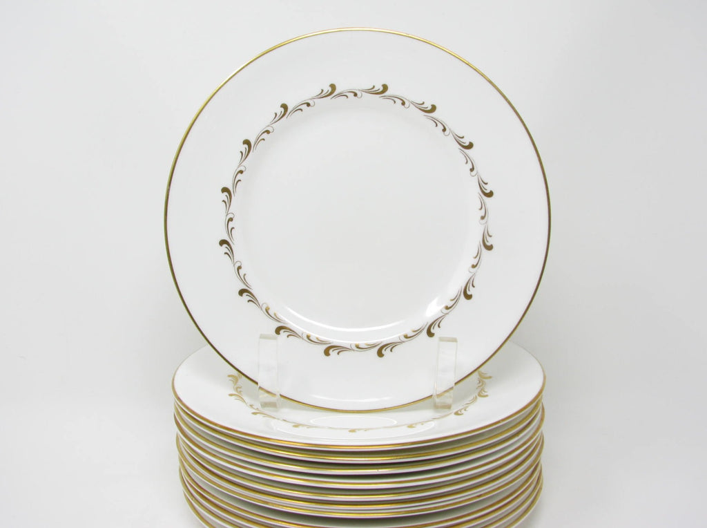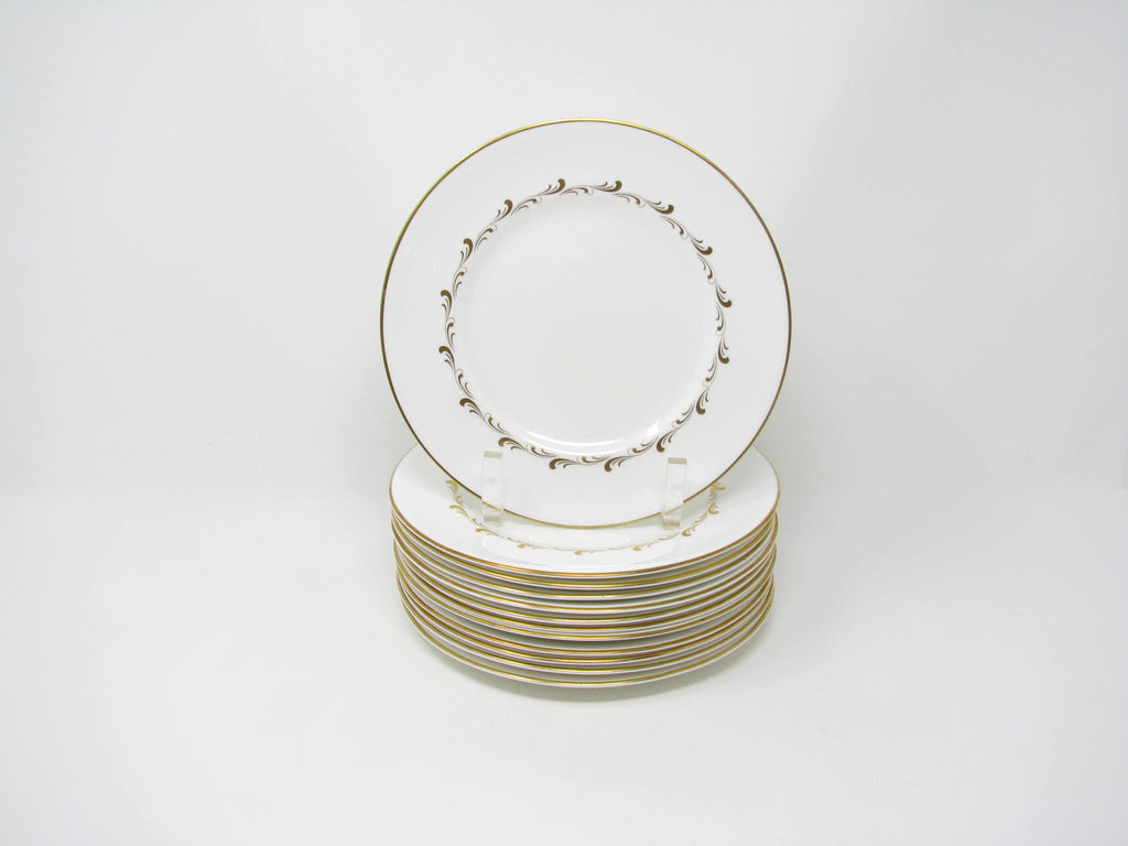 edgebrookhouse - Vintage Royal Doulton England White Rondo Salad Plates with Gold Scrolls - 12 Pieces