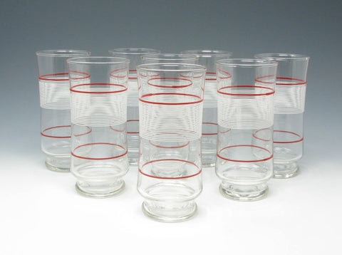 Vintage 1980s Crisa Contempo Glass Tumblers with White and Red Stripes - 8 Pieces