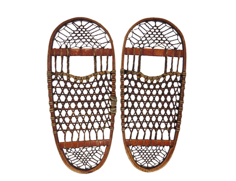 Vintage Vermont Tubbs Style Bearpaw Shaped Snowshoes With Rawhide Lacing