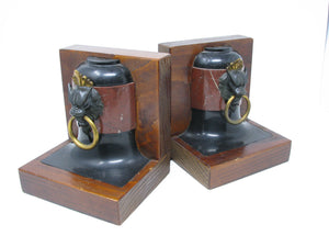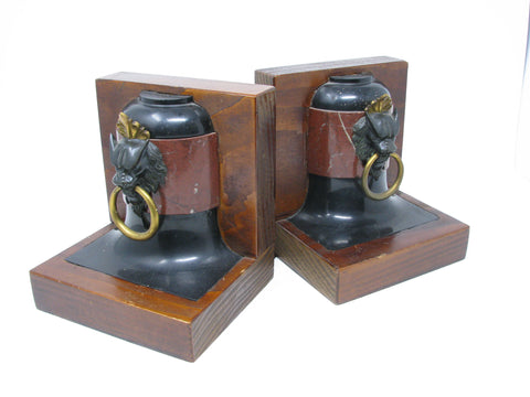 Vintage English Regency Style Lion / Gargoyle Bookends With Wood Base - a Pair