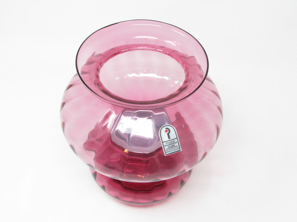 Vintage Pilgrim Cranberry Glass Hampton Hurricane Candle Holder