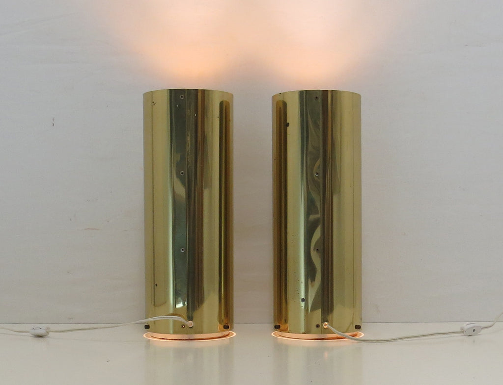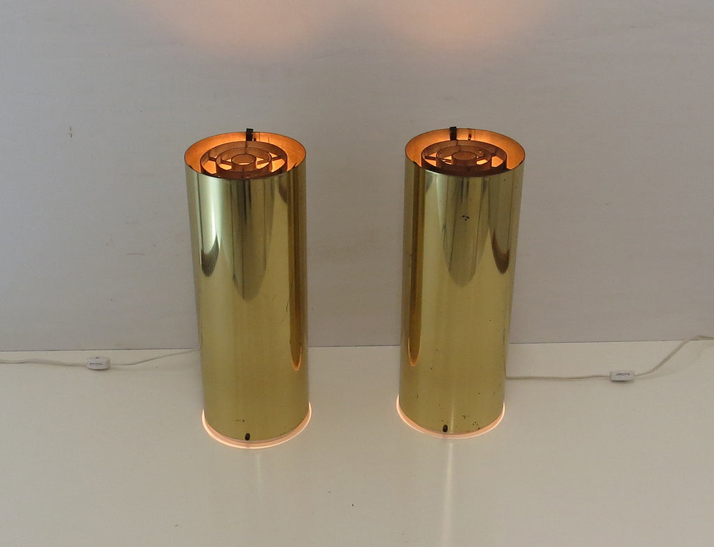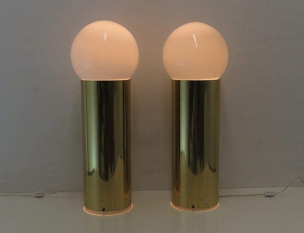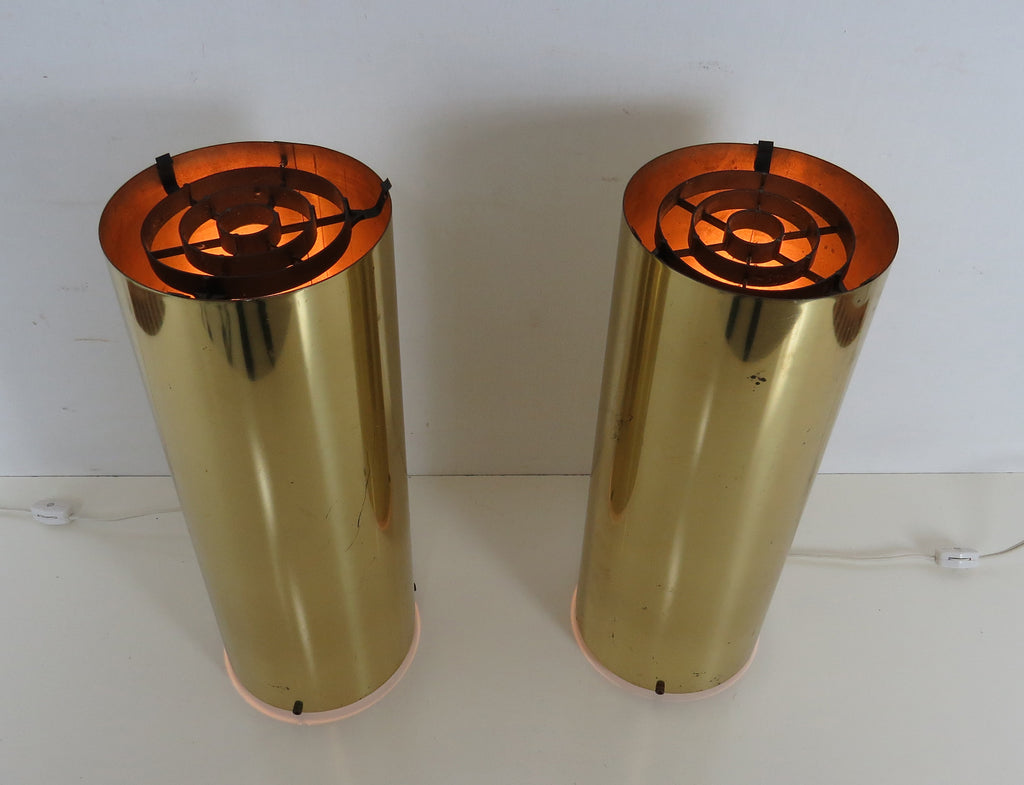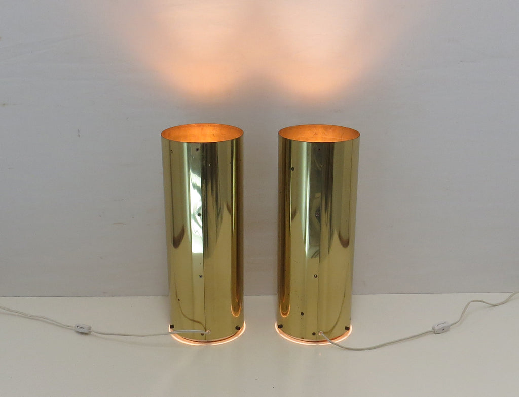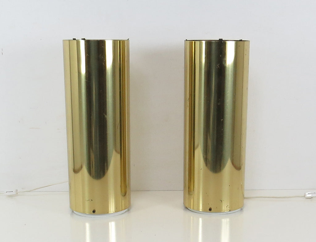Vintage Brass Cylinder Up Light Lamps Attributed to Robert Sonneman - a Pair