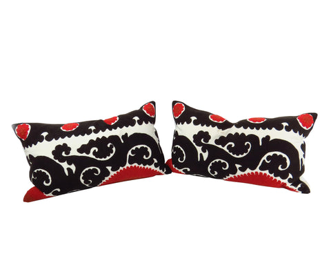 Arhaus Red Uzbek Samarkand Suzanni Cotton Lumbar Pillows in Red and Black - 2 Pieces