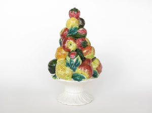 Vintage Ceramic Mixed Fruit Topiary with White Pedestal Base
