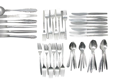 Vintage Traditional Modern Mix Match Stainless Steel Silverware Flatware Set B – 8 Place Settings