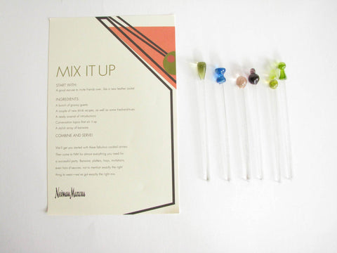 Vintage Neiman Marcus Abstract Blown Glass Cocktail Stirrers Swizzle Sticks - Set of 6