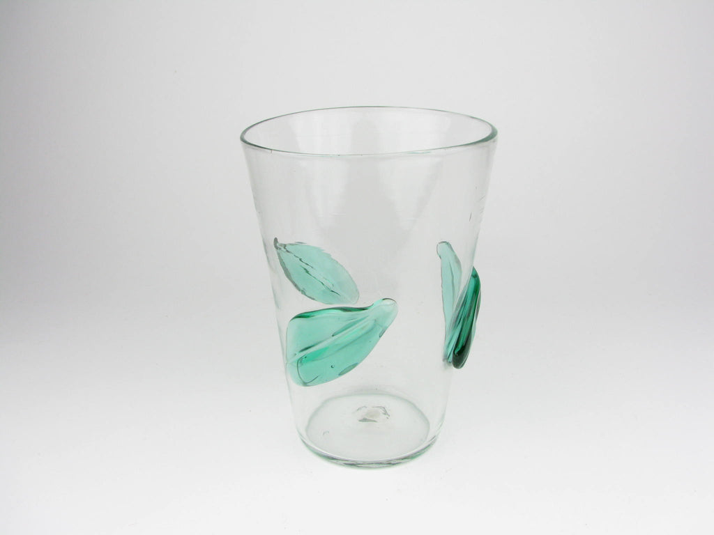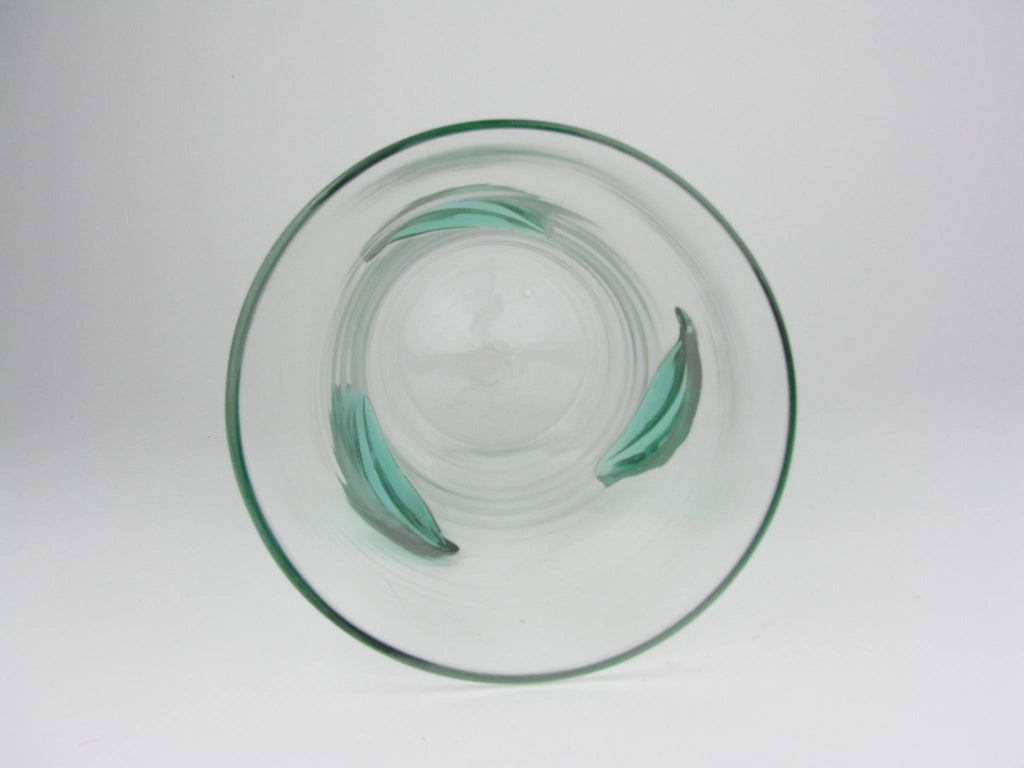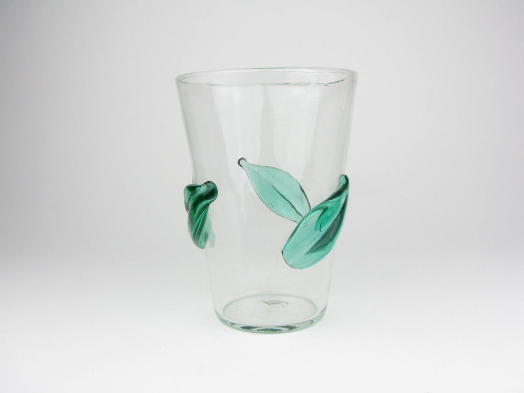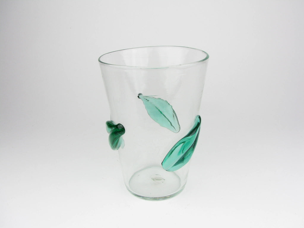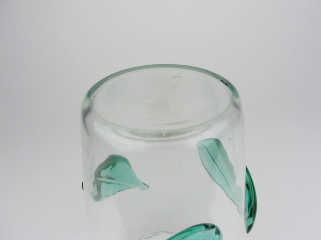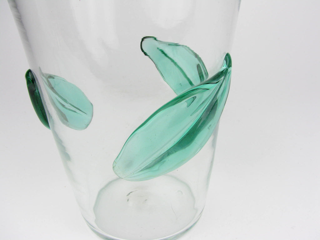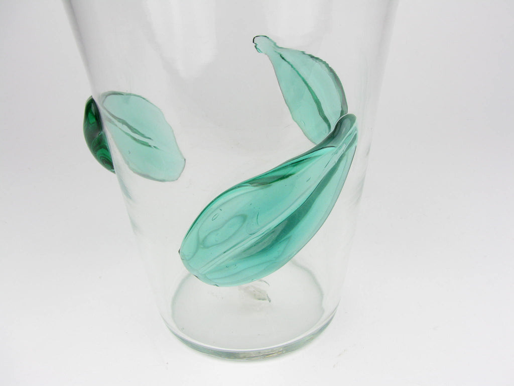 Vintage Blenko Clear Glass Vase with Applied Green Leaves 366