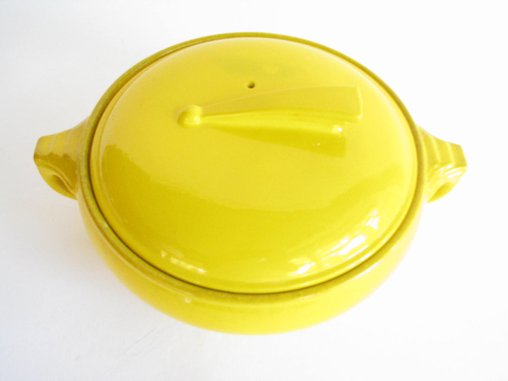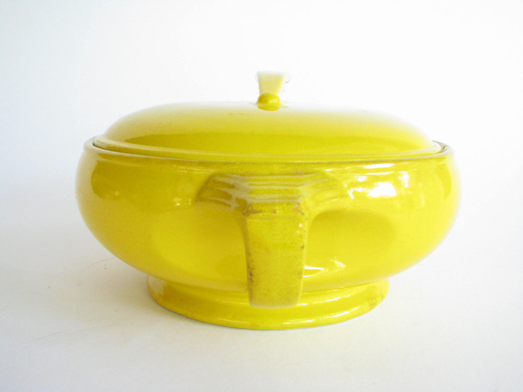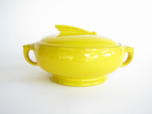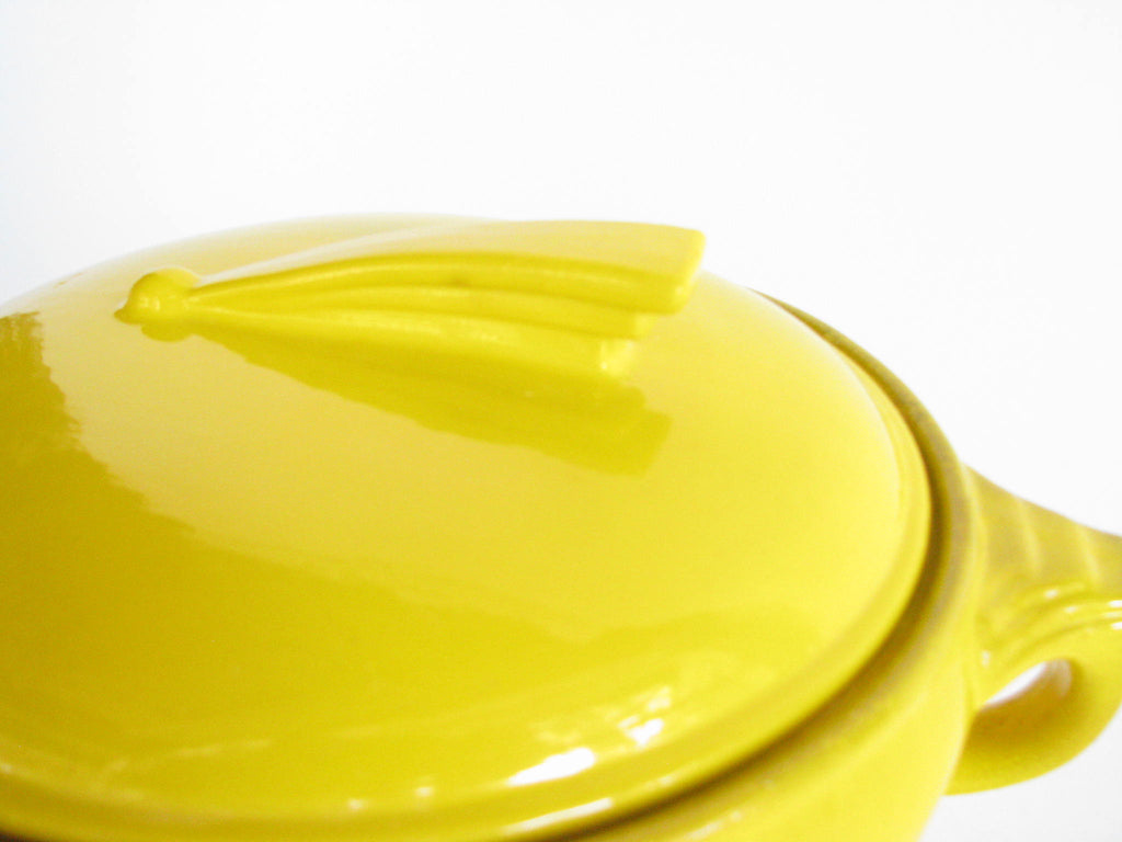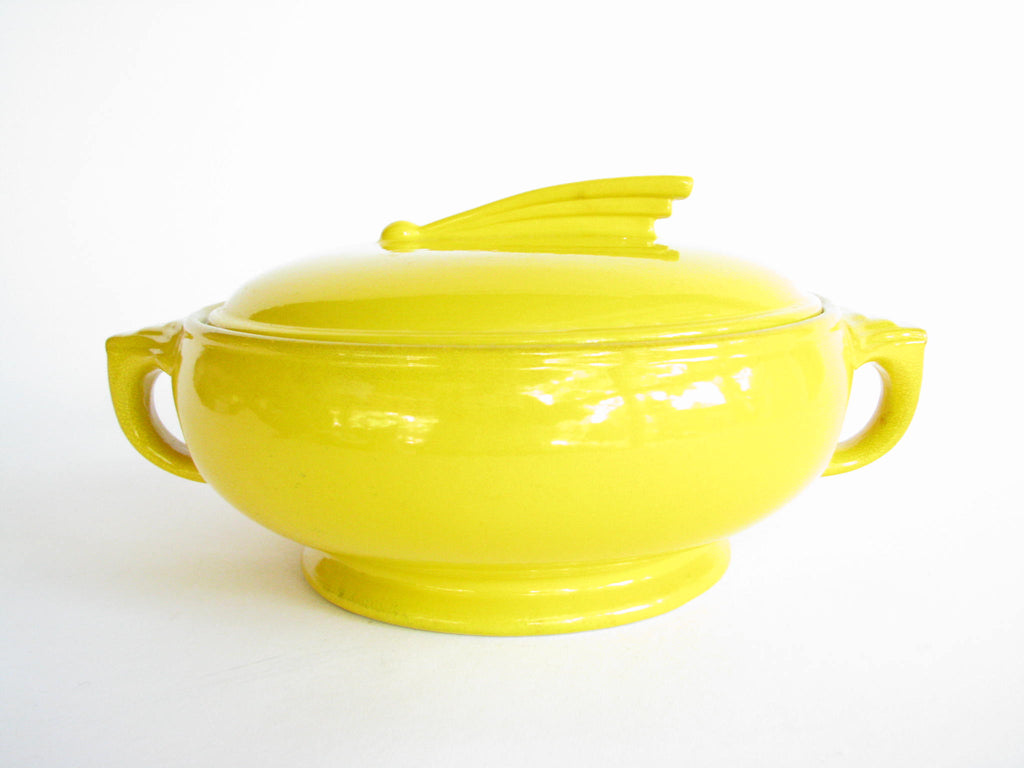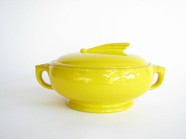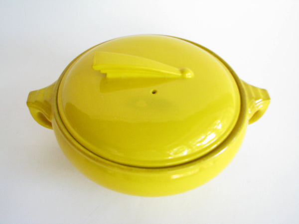 1930s Hall Superior Quality Kitchenware Art Deco style lidded casserole / serving dish made in the USA. Stunning yellow color.