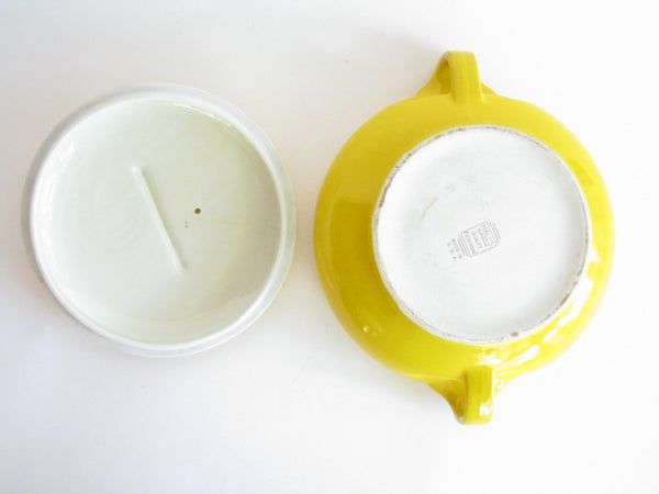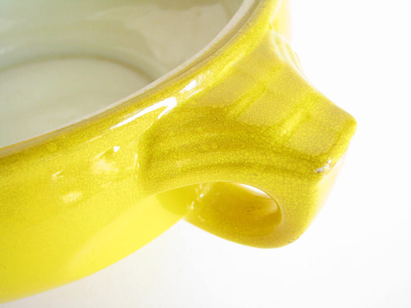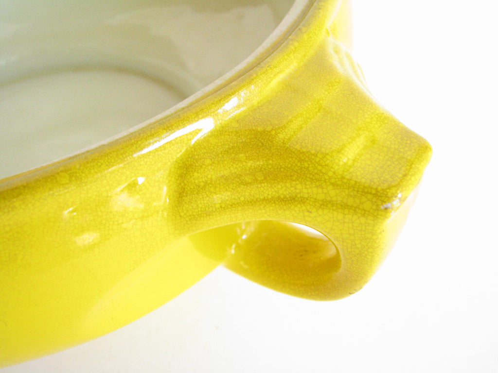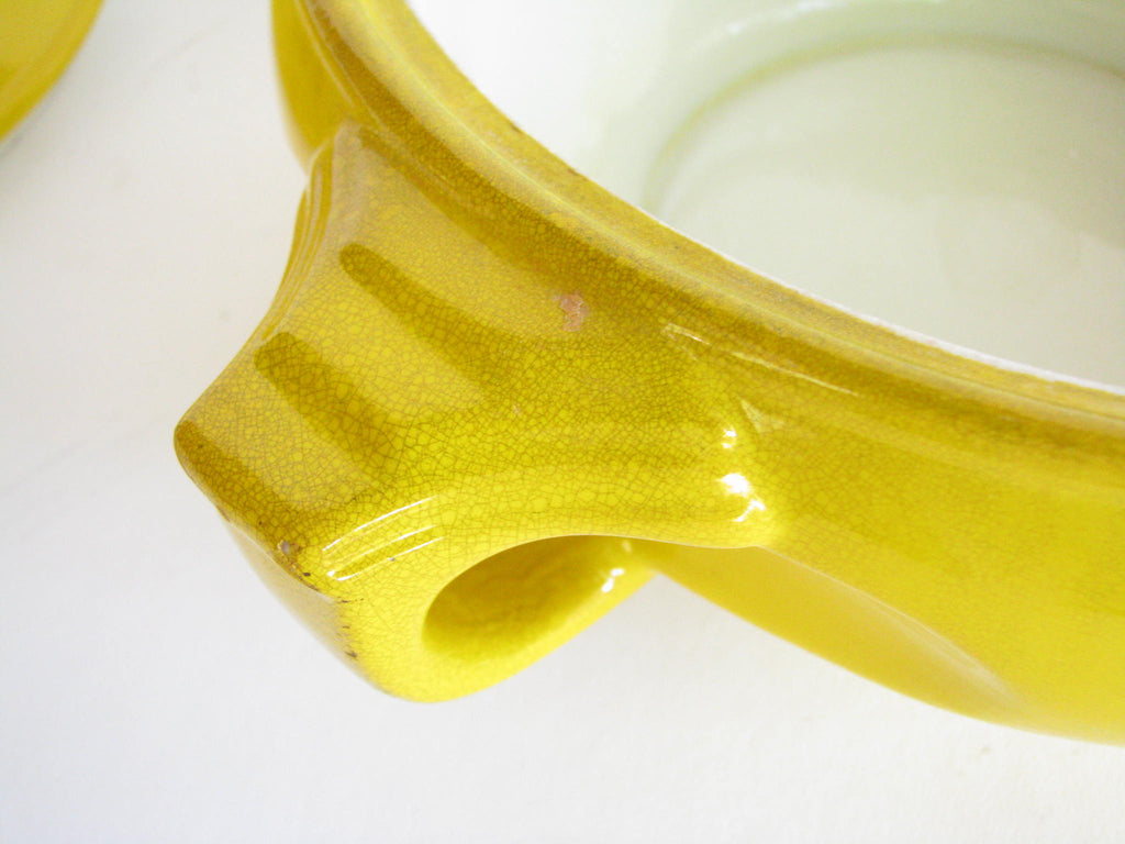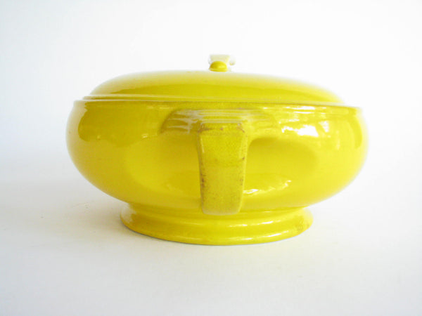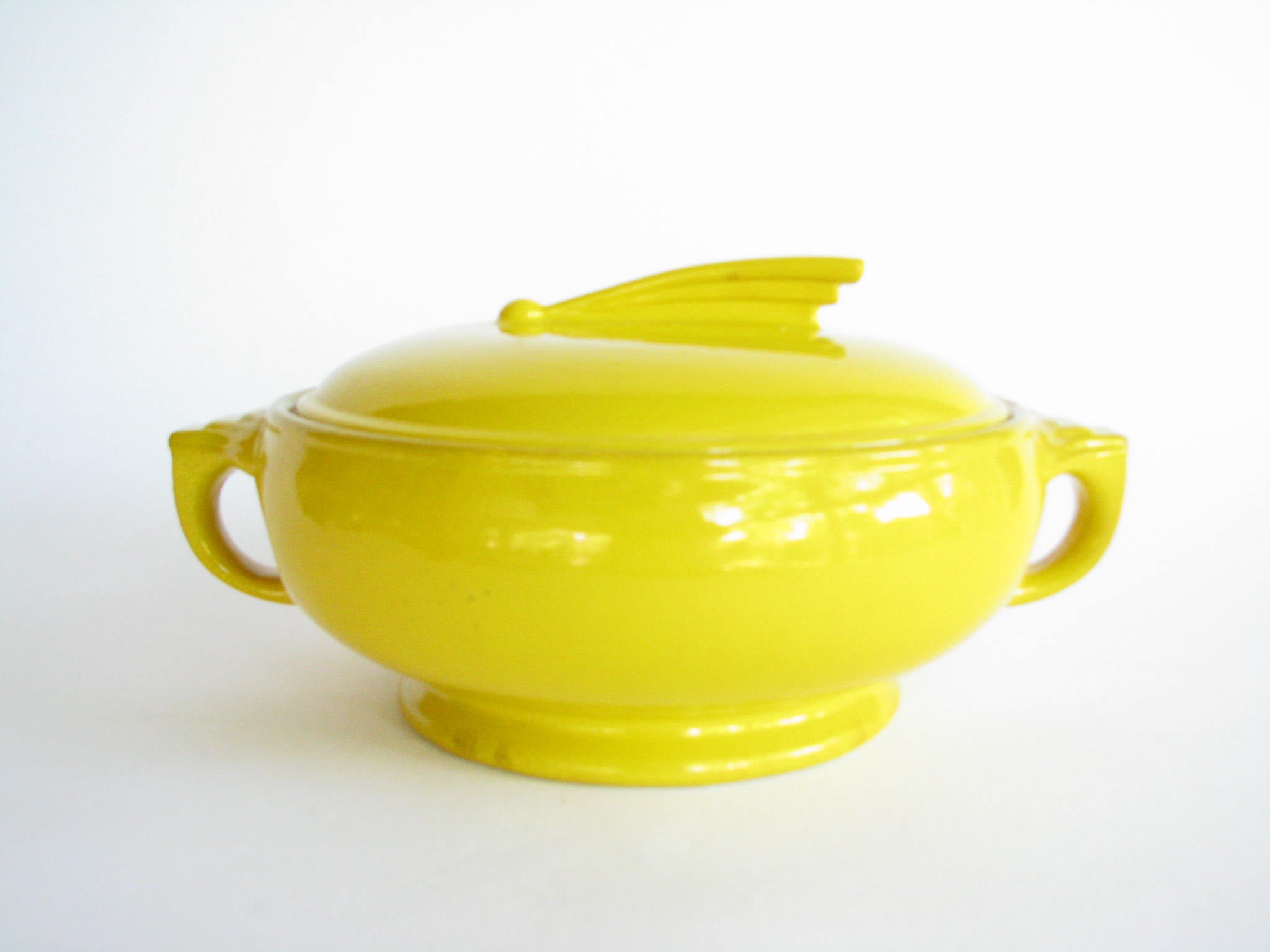 1930s Hall Superior Quality Kitchenware Art Deco style lidded casserole / serving dish made in the USA. Stunning yellow color.