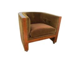 1930s Vintage French Art Deco Burlwood and Velvet U-Shaped Club Chair