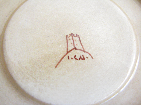 The Industria Ceramica Umbra company was founded by Salvatore Spinelli in the immediate post-World War II. It was located in in Città di Castello, in the province of Perugia and known for the production of artistic ceramics. Through 1949 the artistic and technical direction was entrusted to Renato Bassanelli and included several collaborators (ceramist Elsa Mercati, painter and sculptor Aldo Riguccini, and ceramist Fernando Bizzirri). At the end of the 1940s the owners of the company were Luciano and Silvano Spinelli, Salvatore's sons. The Umbrian Ceramic Industry ceased production in 1952. Pieces are marked with 'Italy', 'ICU' and/or the image of a Castle.