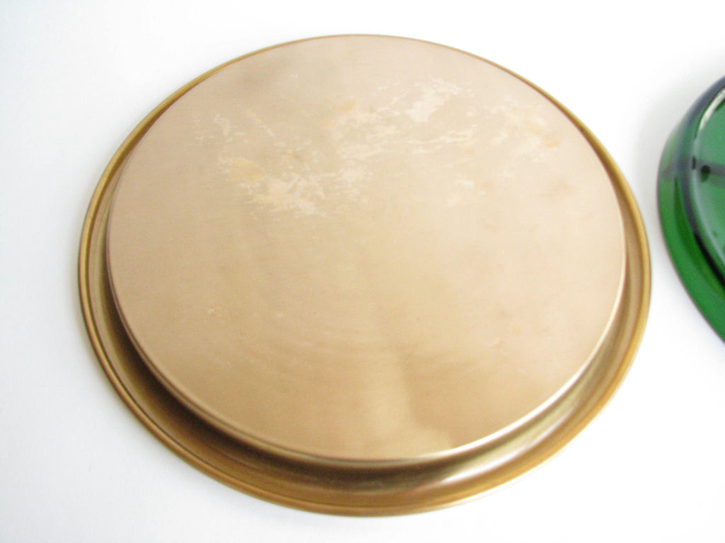 1940s Paden City Emerald Glo Green Glass and Brass Serving Platter by National Silver Company