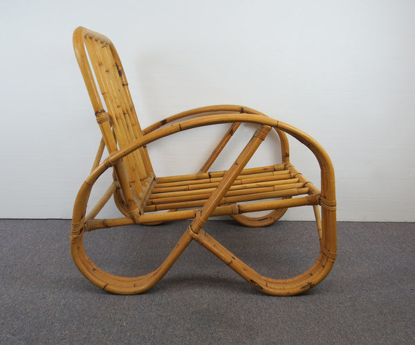1940s Paul Frankl Inspired "Pretzel" Bamboo Lounge Chair