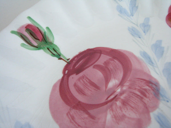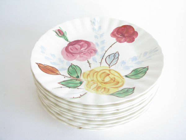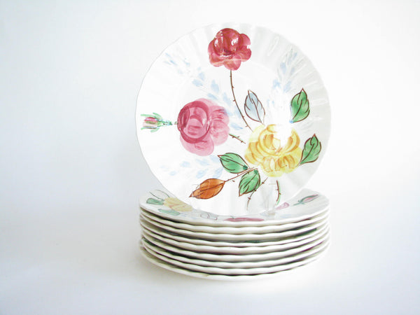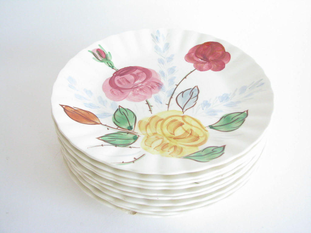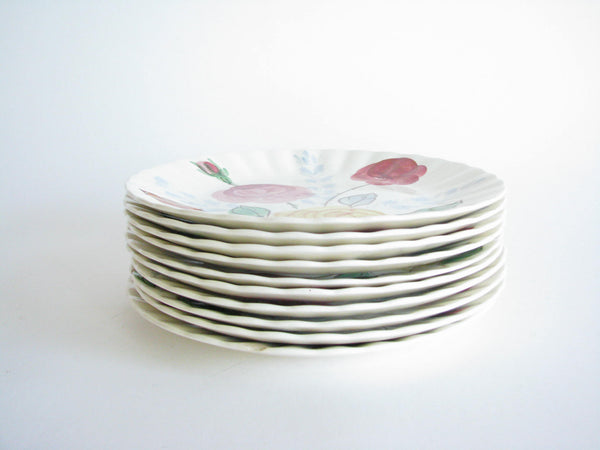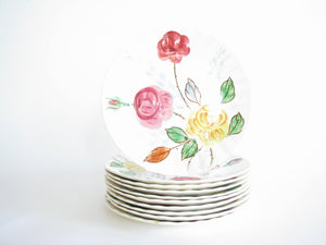 Vintage set of 10 Southern Pottery Blue Ridge Carol's Roses dinner or luncheon plates with fluted edge.