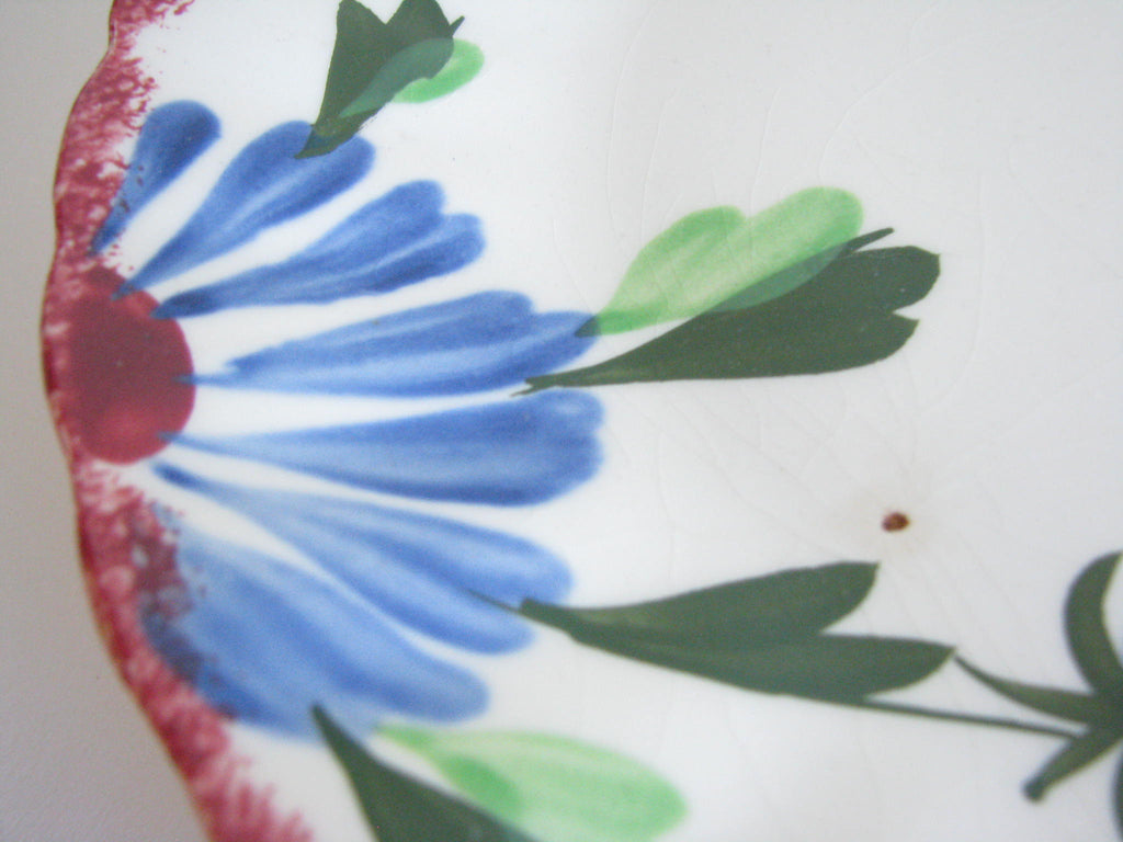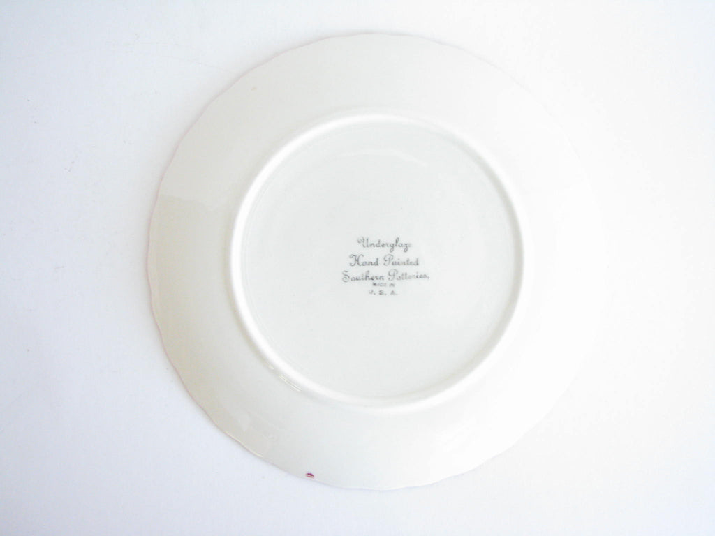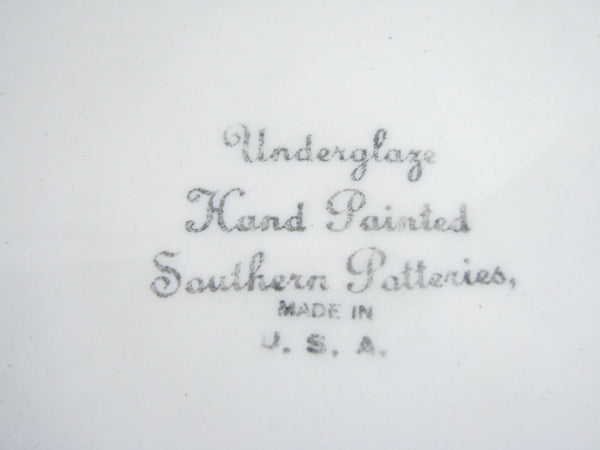 Blue Ridge is a brand and range of American tableware (dishware) manufactured by Southern Potteries Incorporated from the 1930s until 1957. Well known in their day for their underglaze decoration and colorful patterns, Blue Ridge pieces are now popular items with collectors of antique dishware. The underglaze technique made the decorations more durable, and while basic patterns were reused consistently, the fact that each piece was hand-painted means that no two pieces are exactly alike. (Excerpt from Wikipedia)