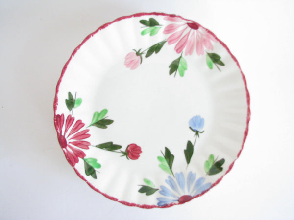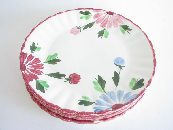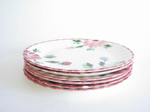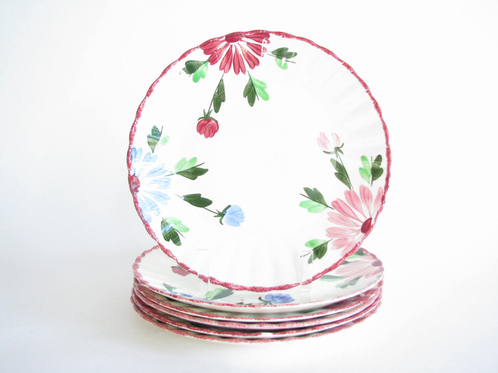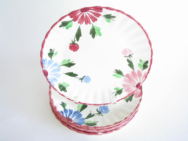 Vintage set of 6 Southern Pottery Blue Ridge Mardi Gras dinner or luncheon plates with fluted edge.