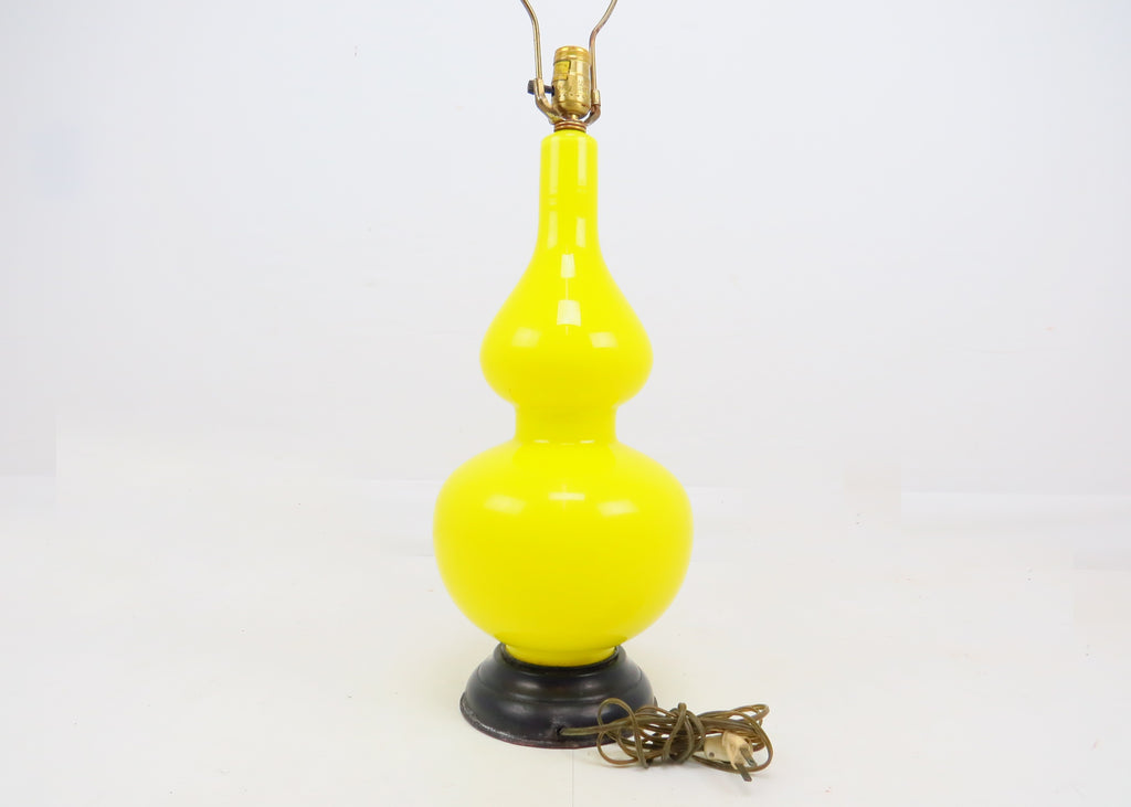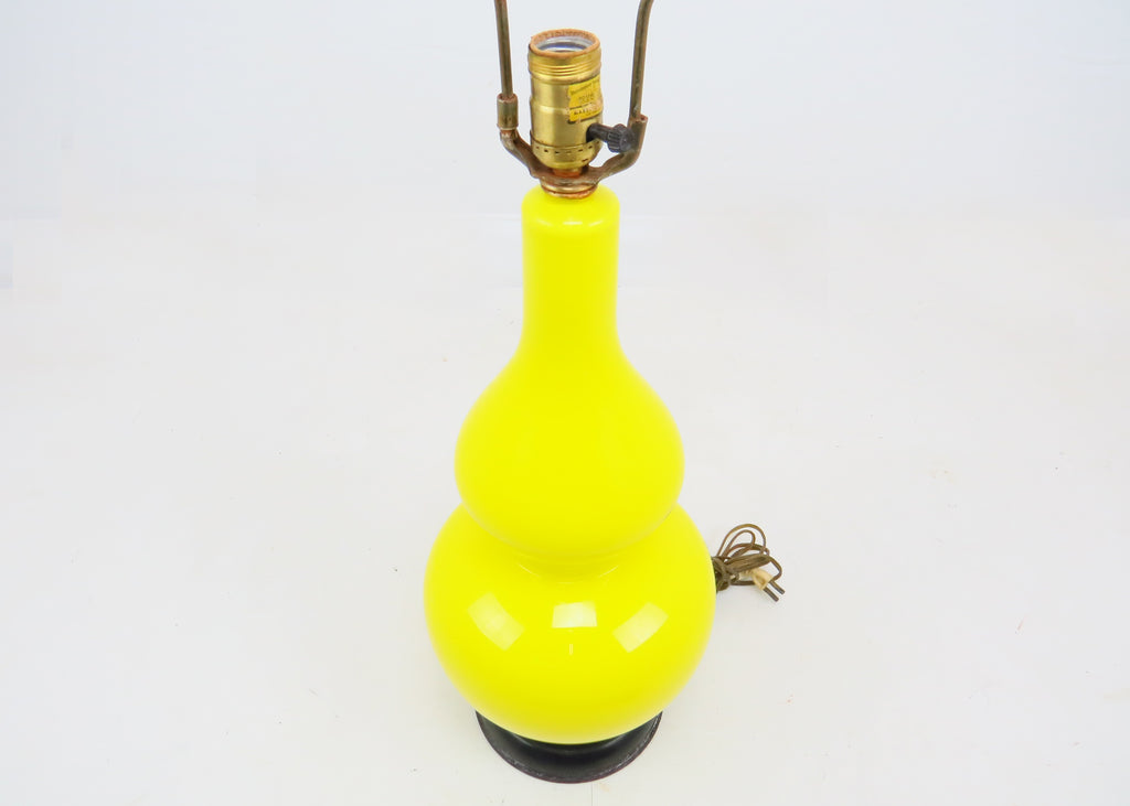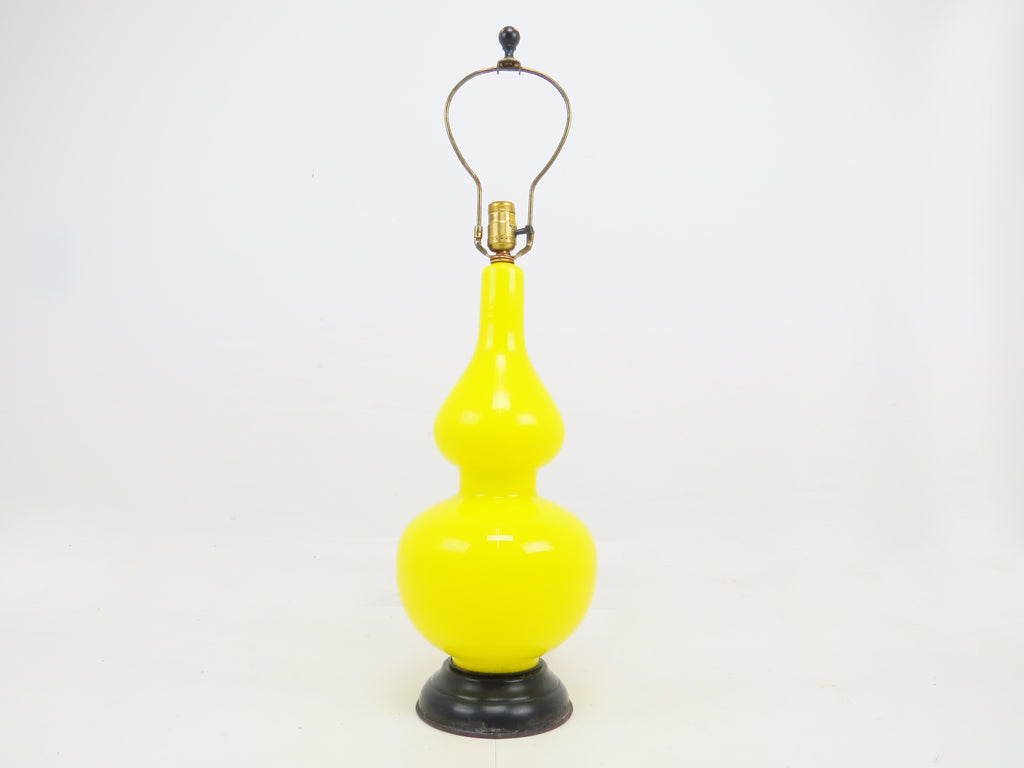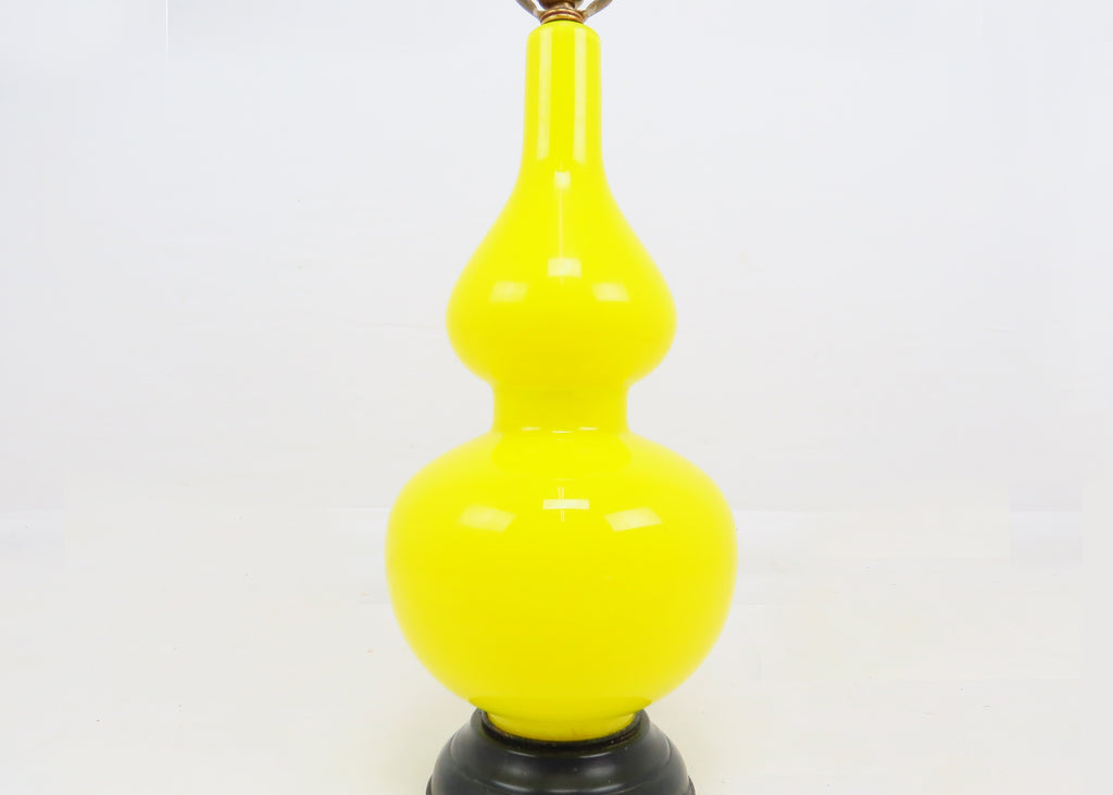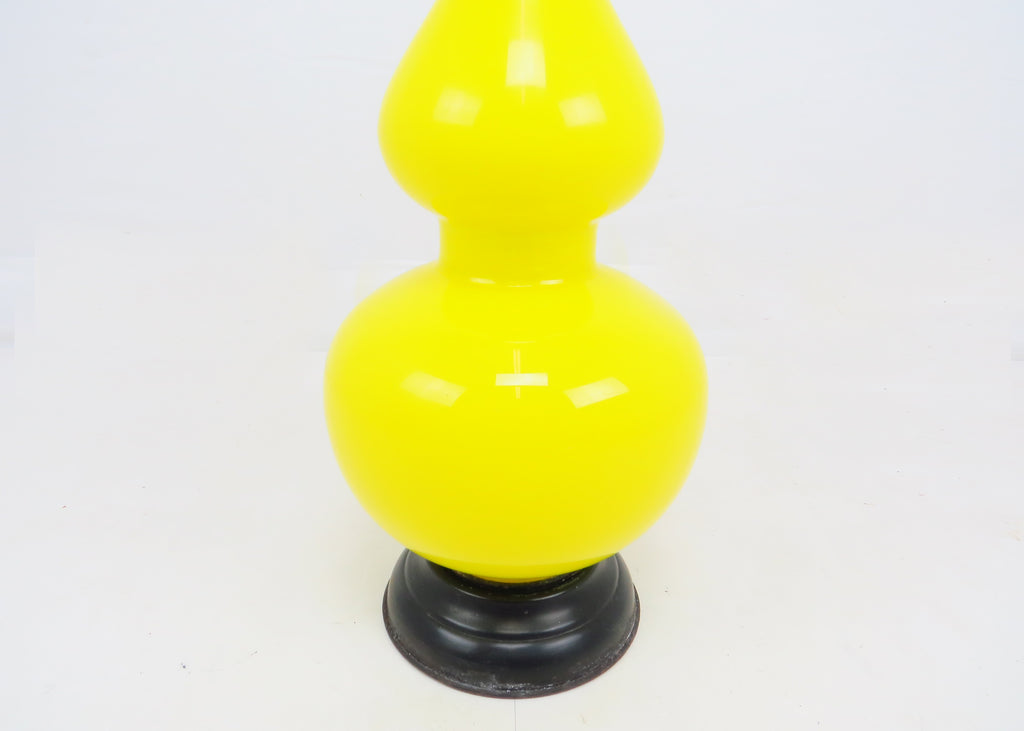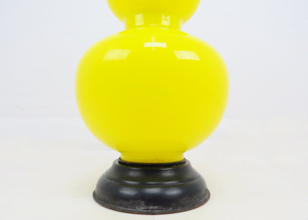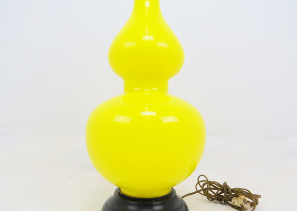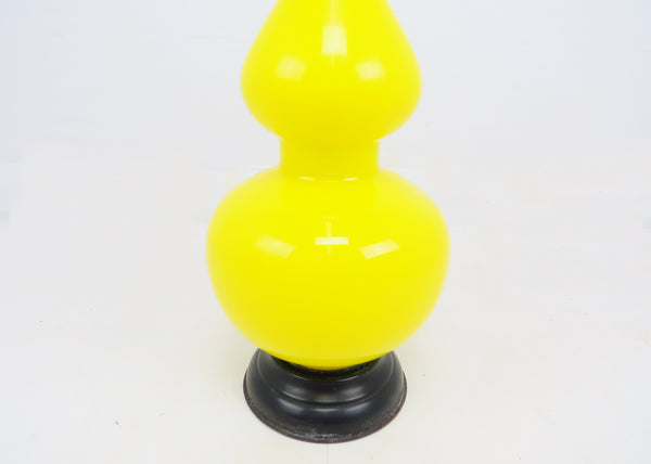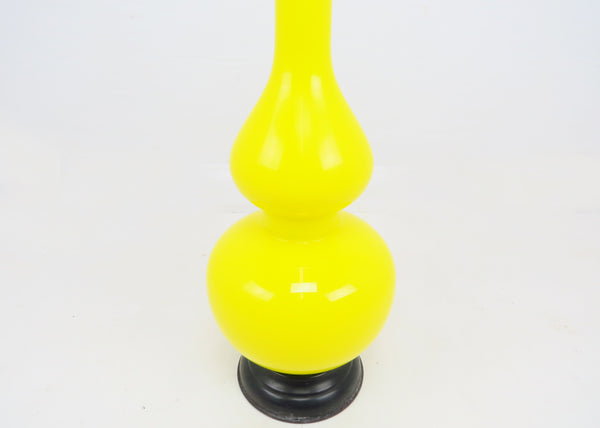 Stunning 1950's Cenedese Murano glass table lamp. Made by The Marbro Lamp Company. Bright yellow double gourd shaped glass on black painted metal base.