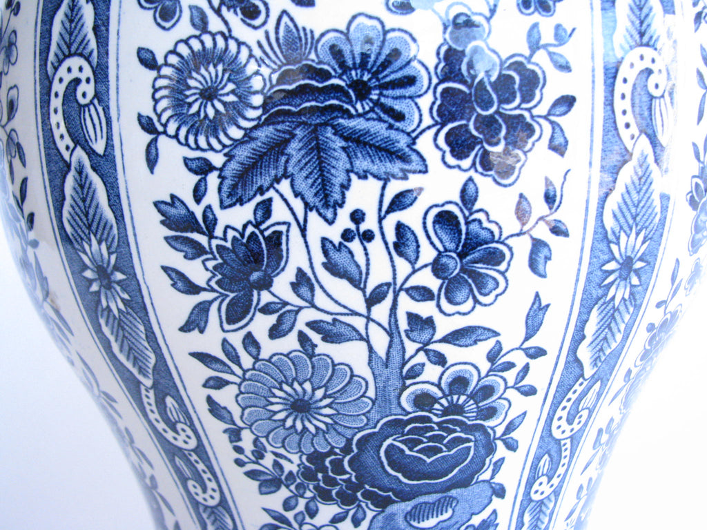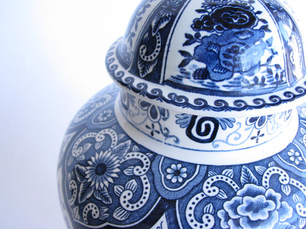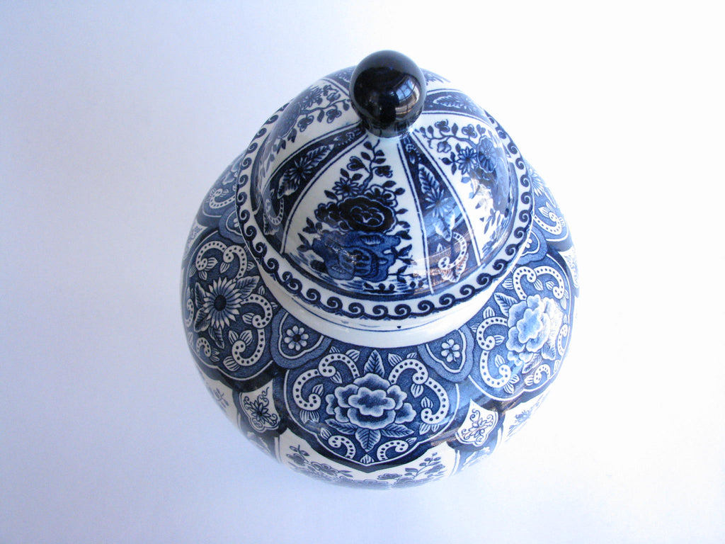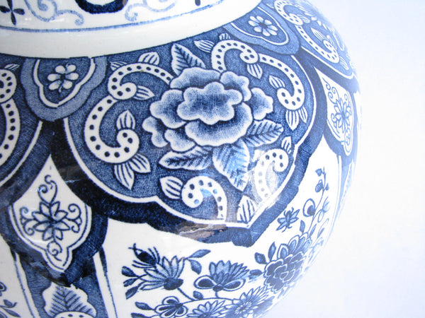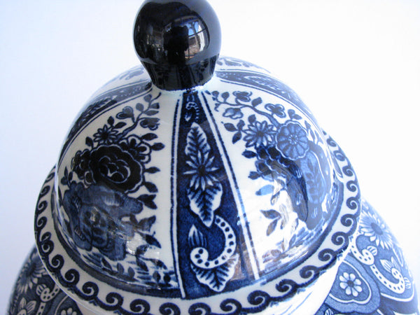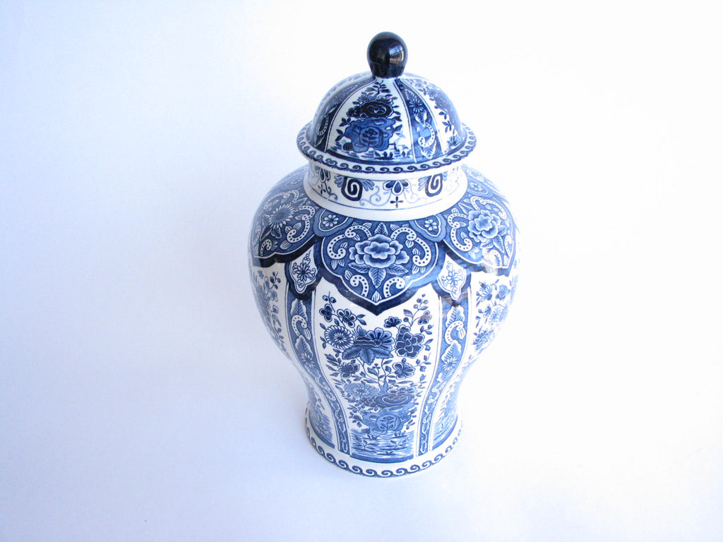 1950s Blue and White Delft Lidded Jardiniere / Ginger Jar by Royal Bach Belgium