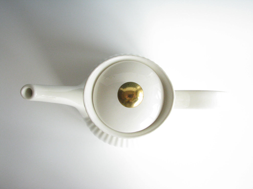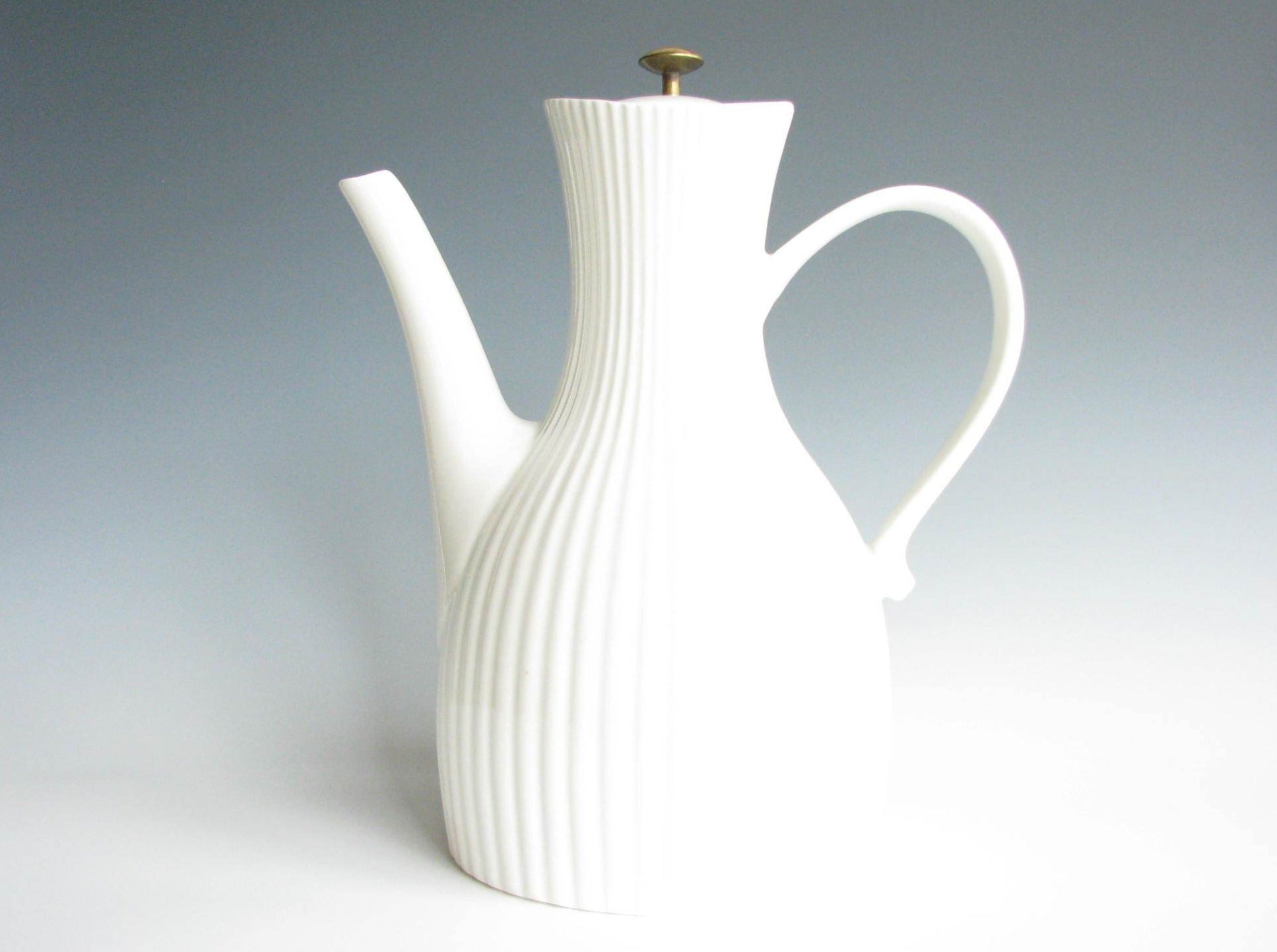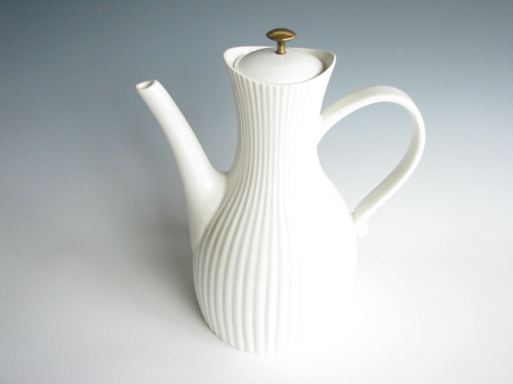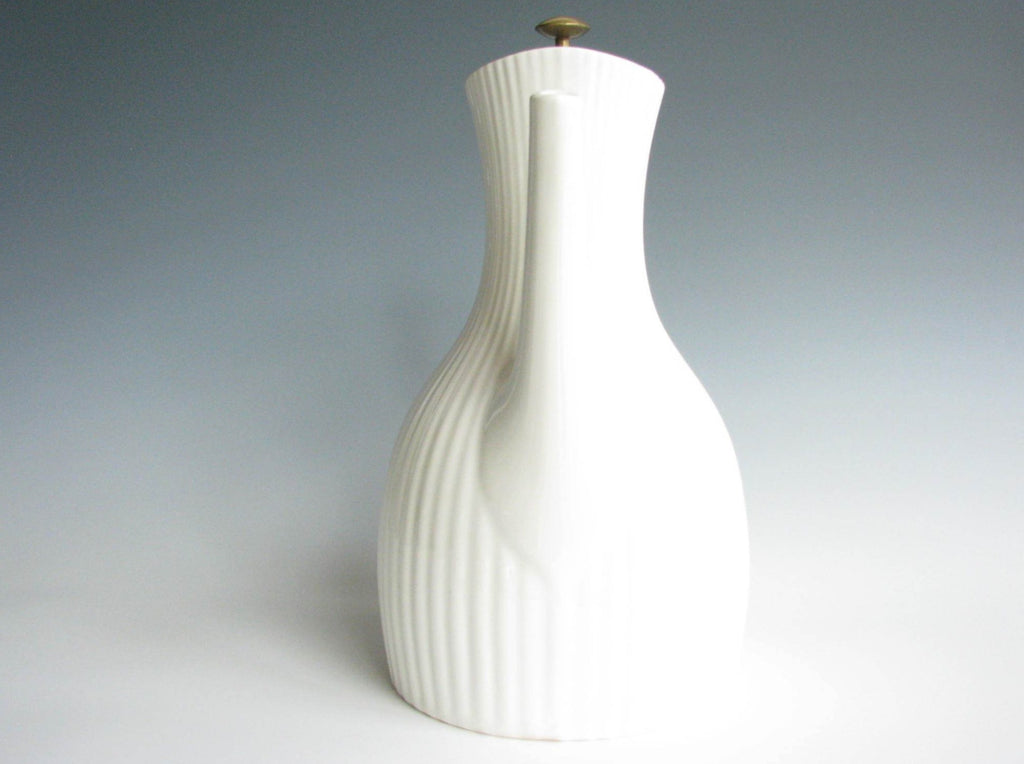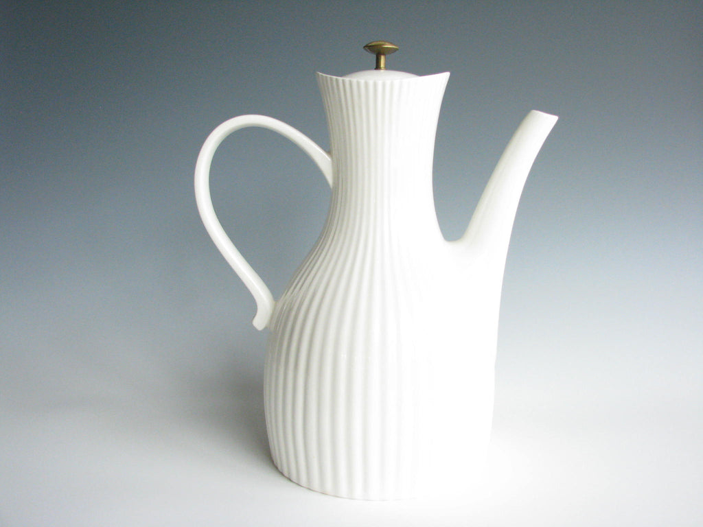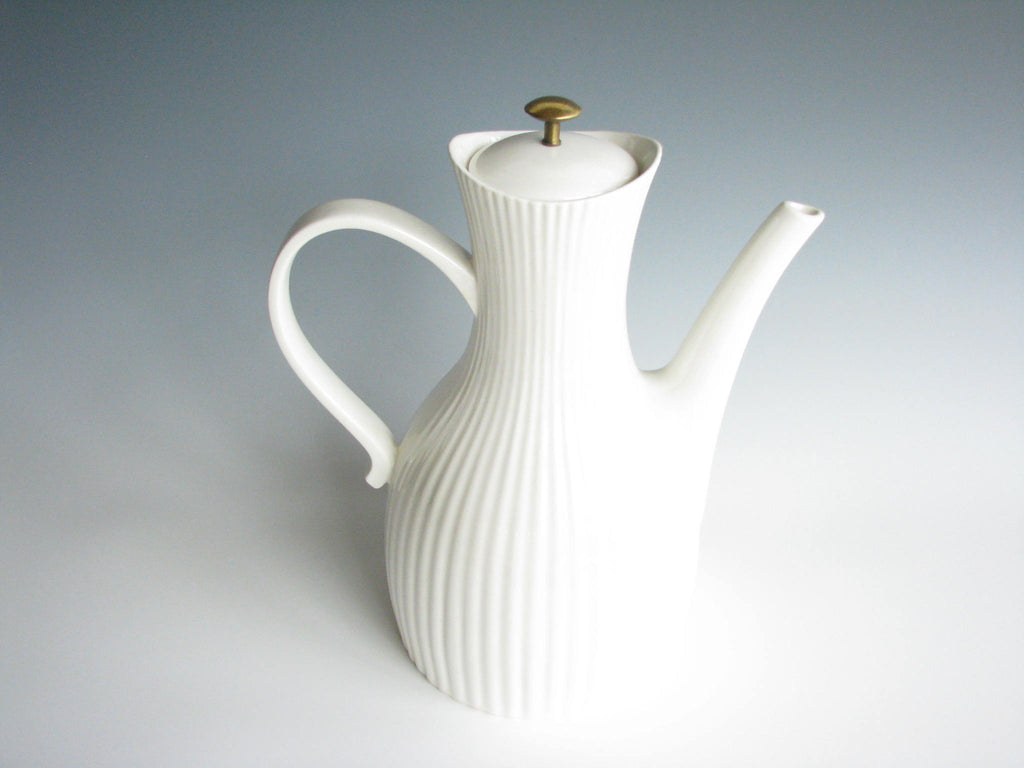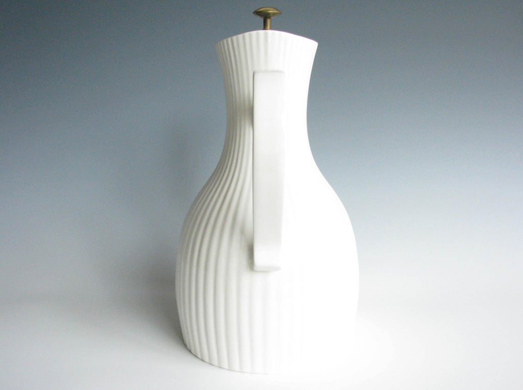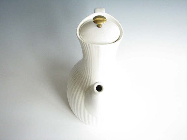 1950s Ernest Sohn Creations Large Ribbed Ceramic Coffee Pot with Brass Lid Knob