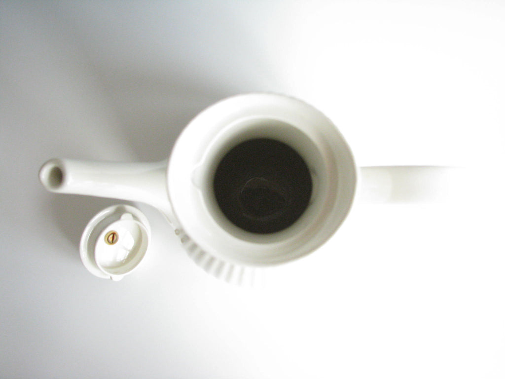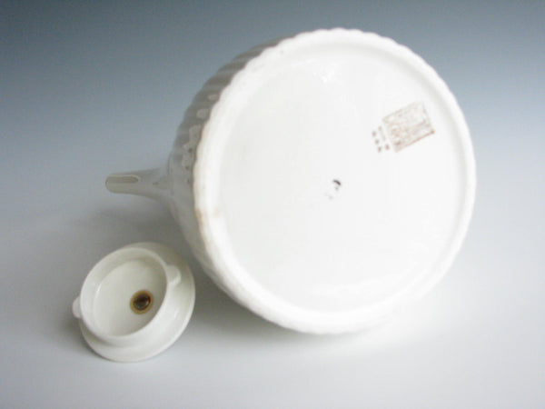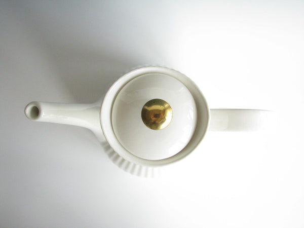 Vintage Ernest Sohn Creations large ribbed ceramic coffee pot with brass lid knob.