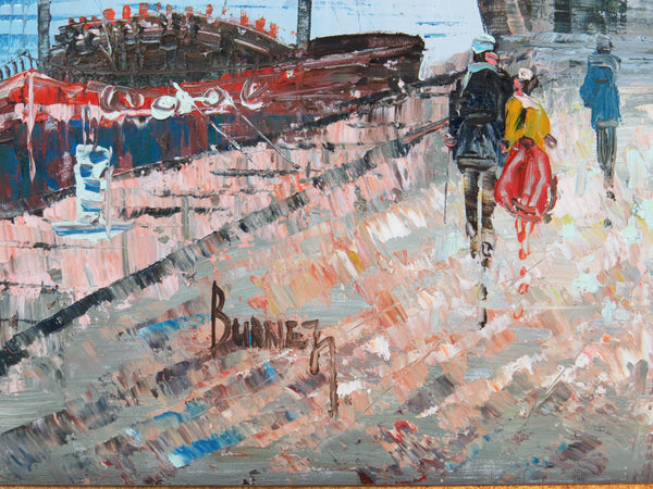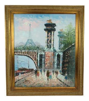 1950s Mid-Century Caroline Burnett Oil on Canvas Paris Scene Along the Seine River With Eiffel Tower
