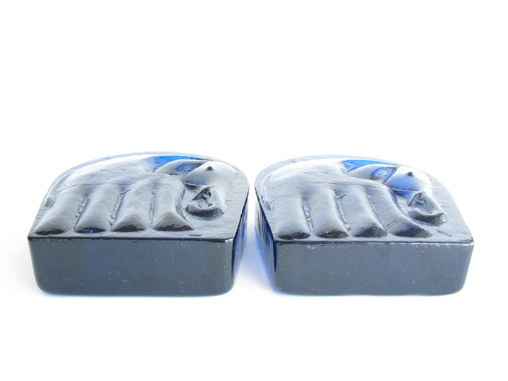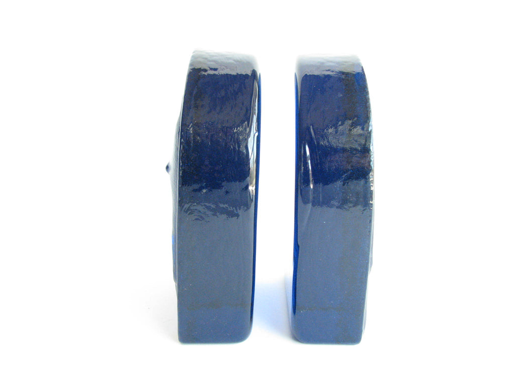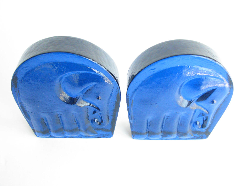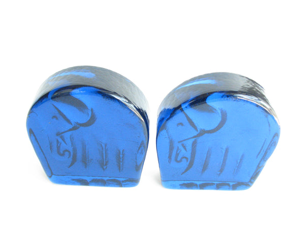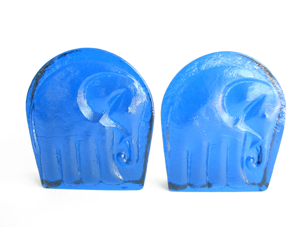 1960s Blenko Art Glass Blue Elephant Bookends - a Pair