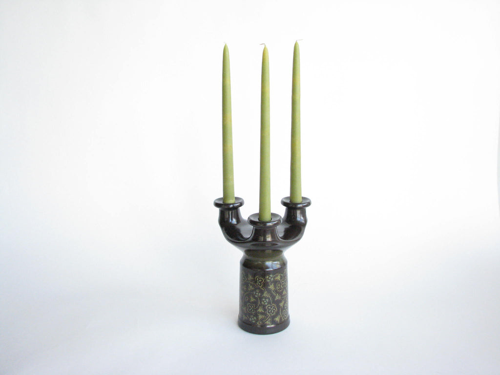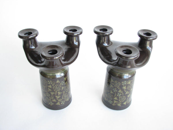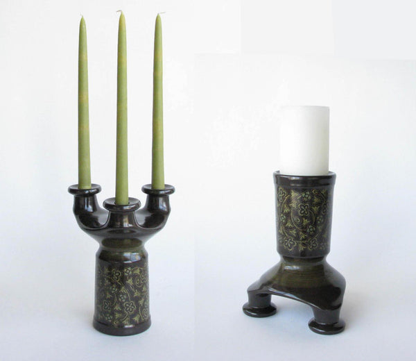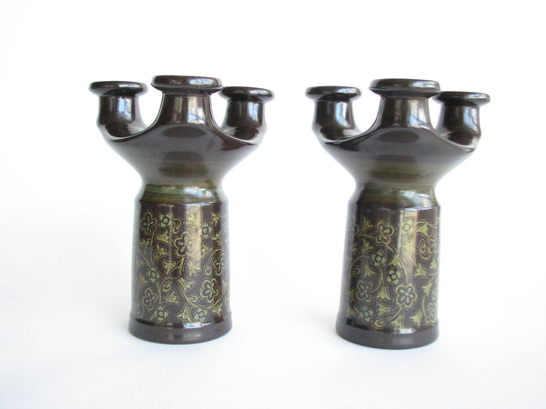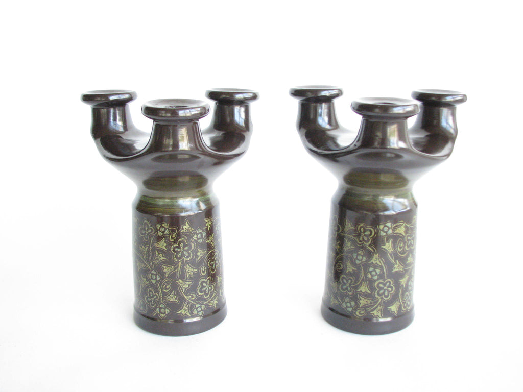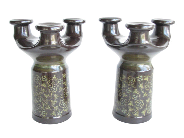 1960s Franciscan Madeira Pillar Candle Holder or Taper Candelabra - a Pair