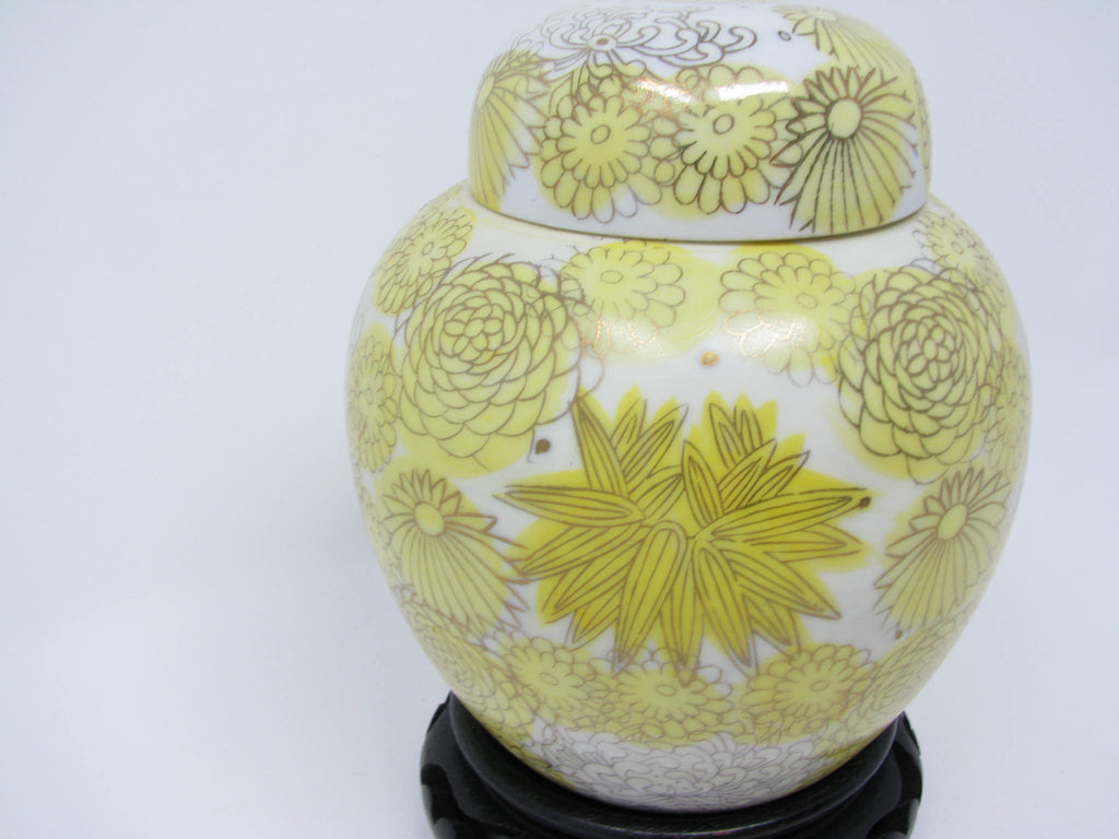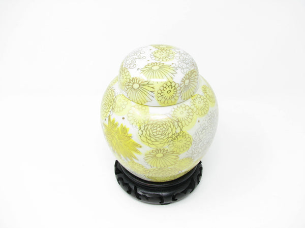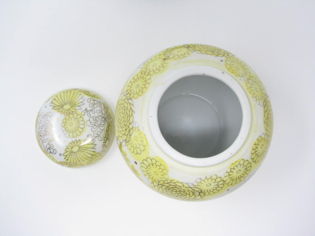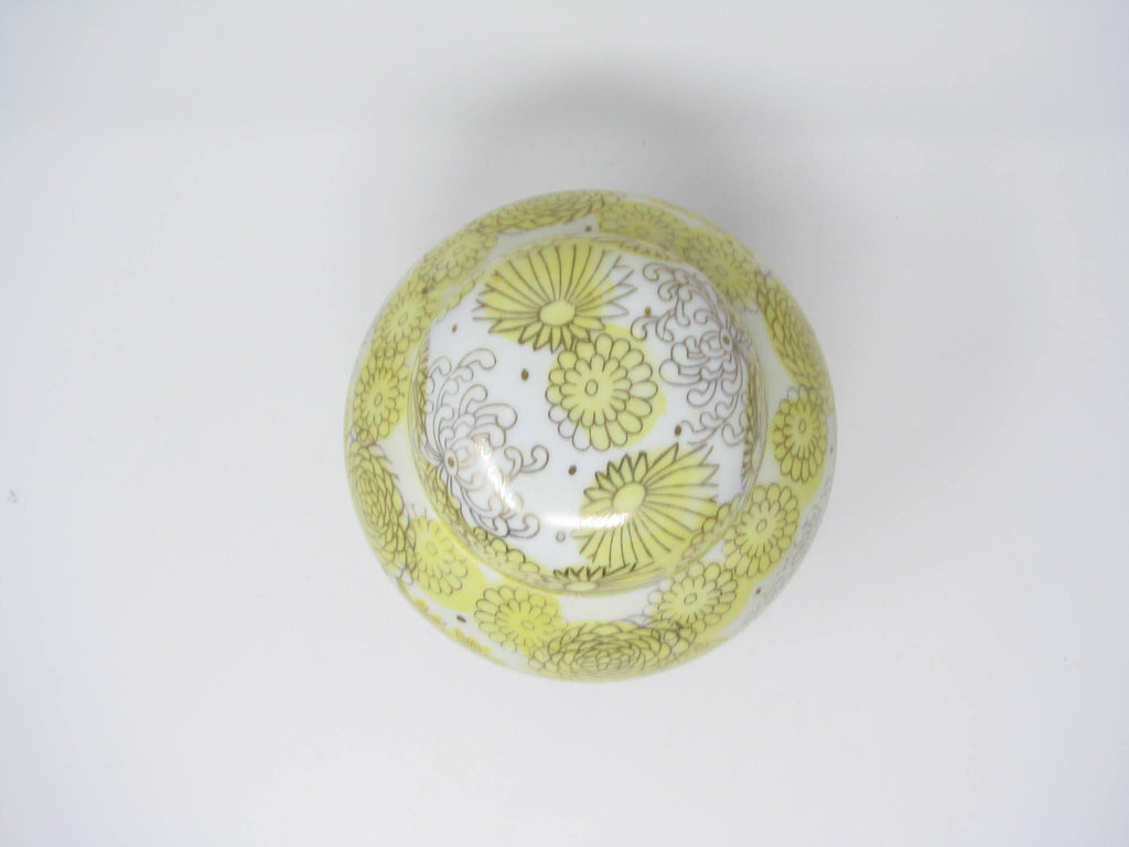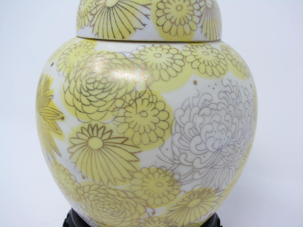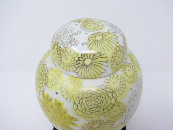 1960s Kutani Japan Porcelain Lidded Ginger Jar with Yellow Gold Chrysanthemum / Floral Design
