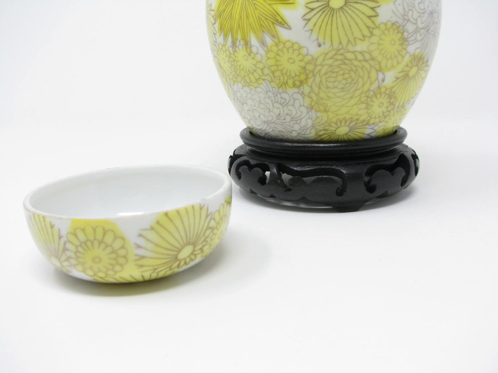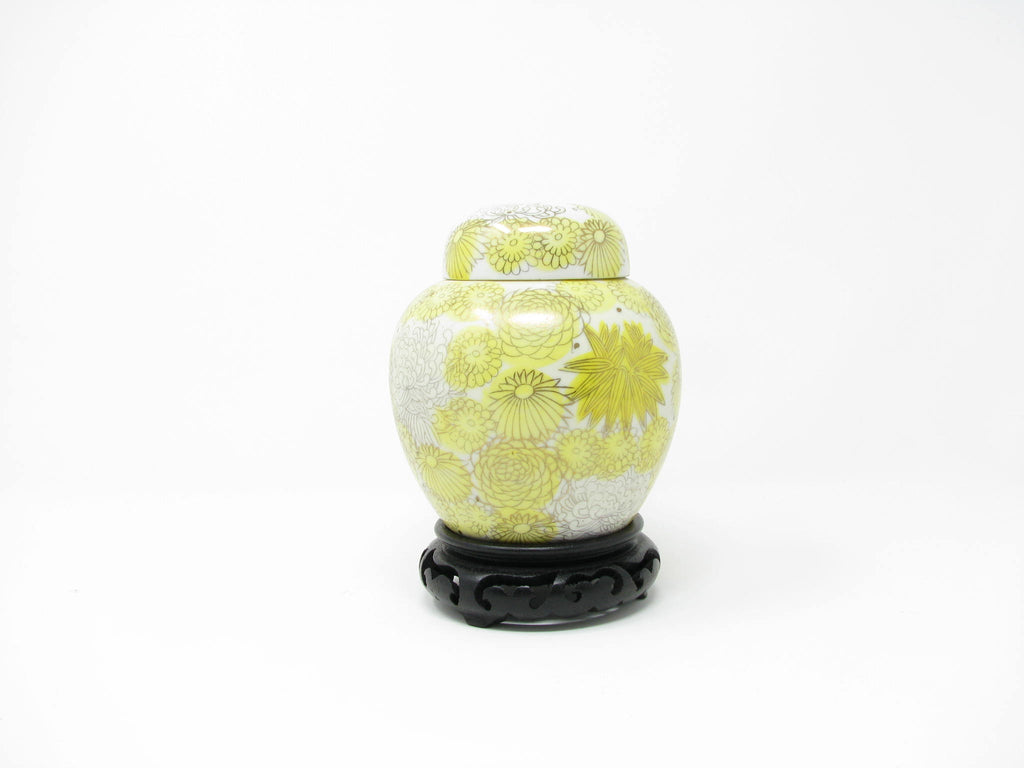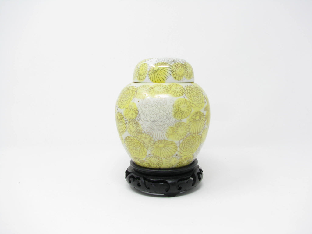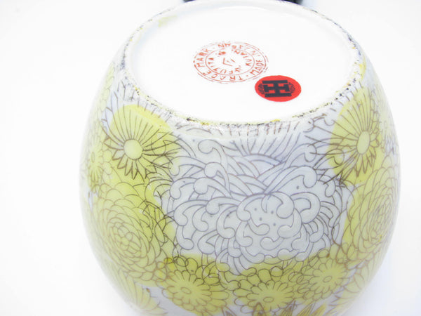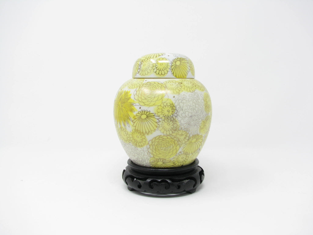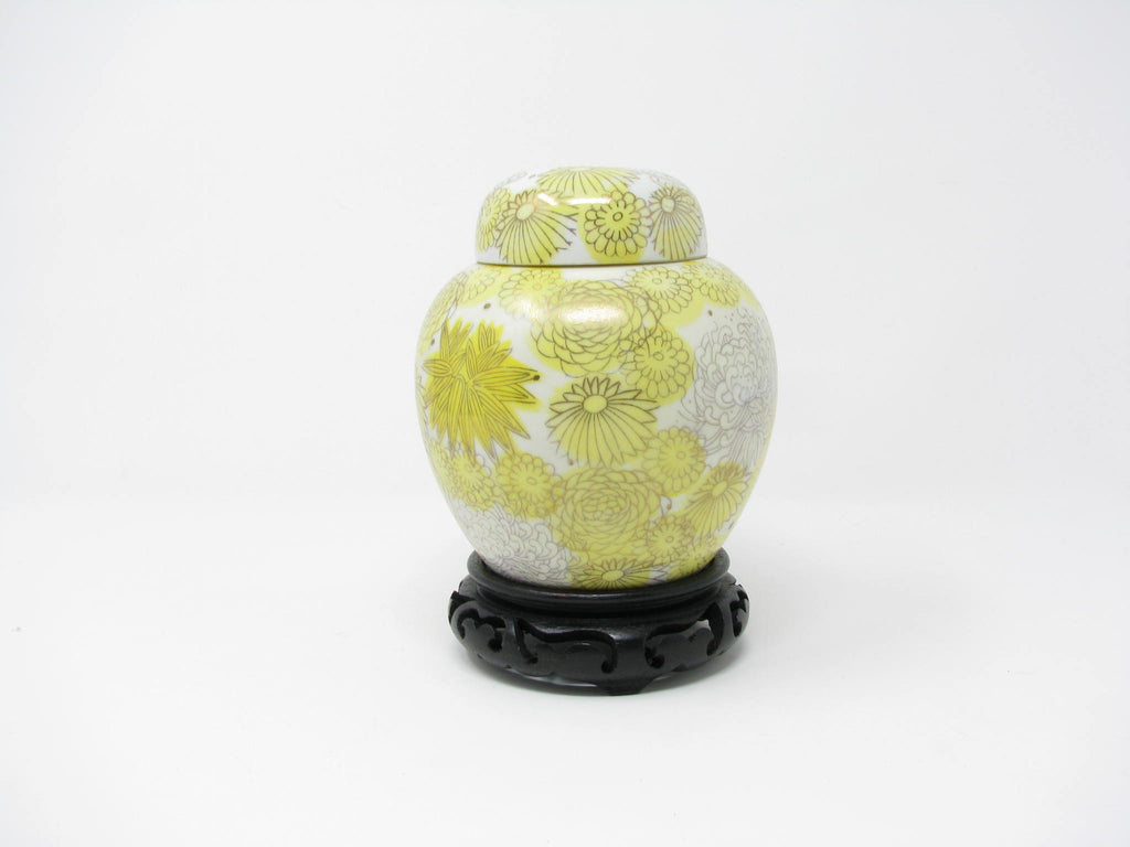 1960s Kutani Japan Porcelain Lidded Ginger Jar with Yellow Gold Chrysanthemum / Floral Design