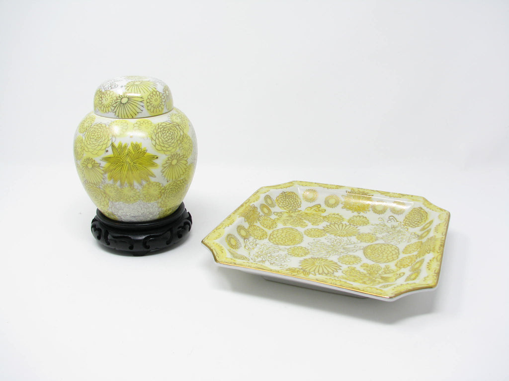 Please note that this listing is for the Kutani yellow ginger jar only. Please search 'Kutani Yellow' for matching pieces including the tray shown in the last photo.