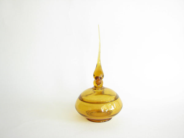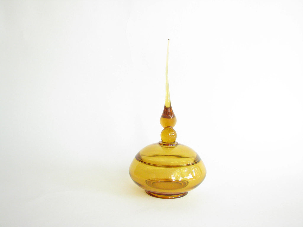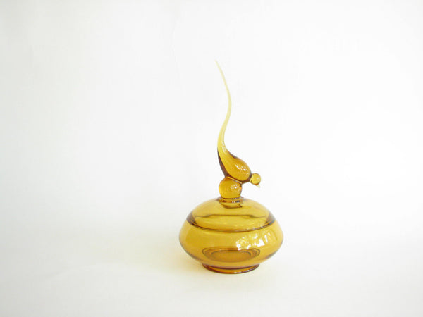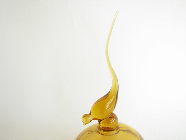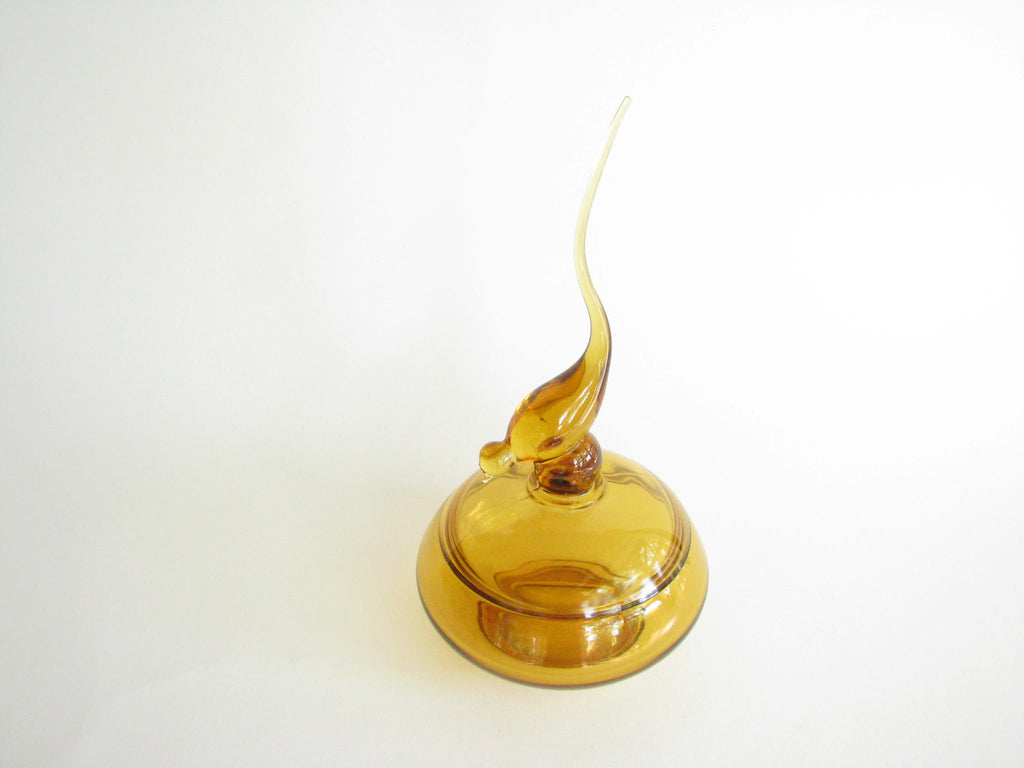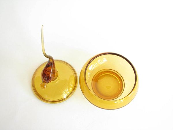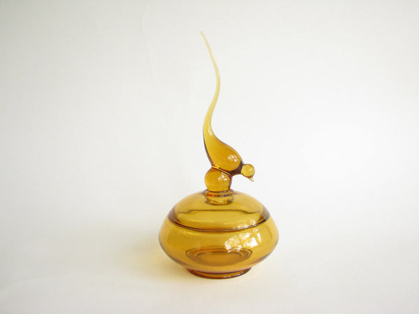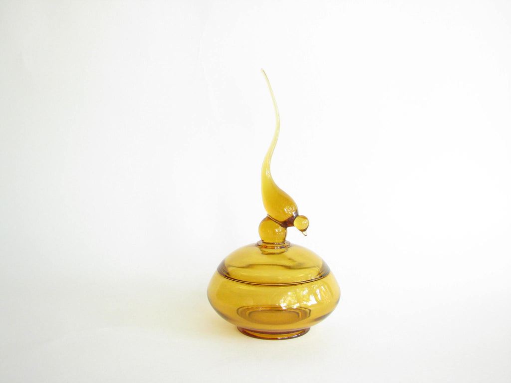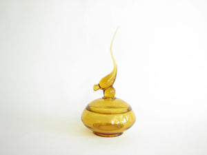 1960s Viking Epic Amber Art Glass Bird Candy Dish / Candy Box
