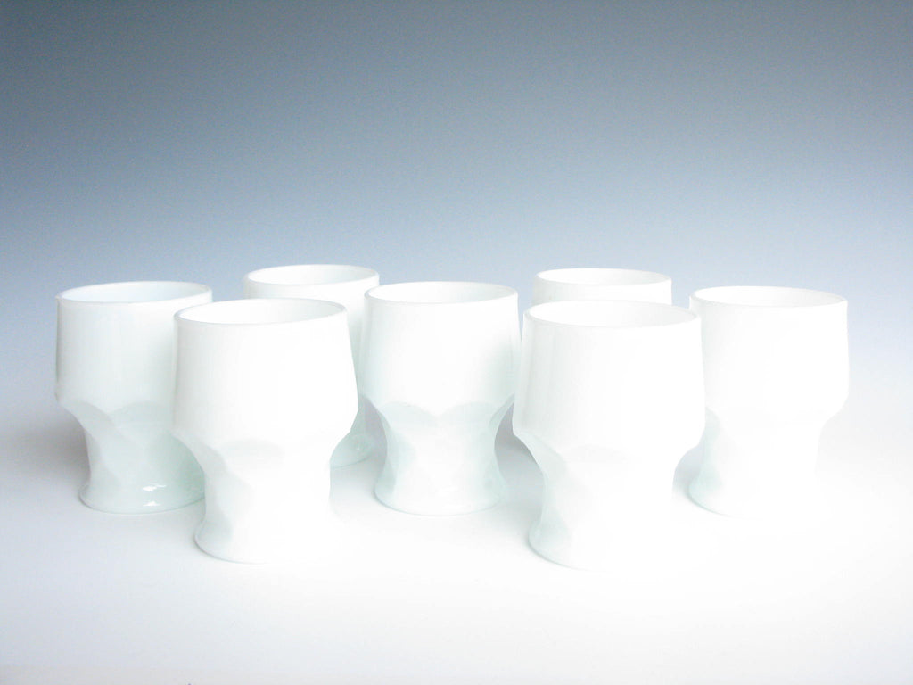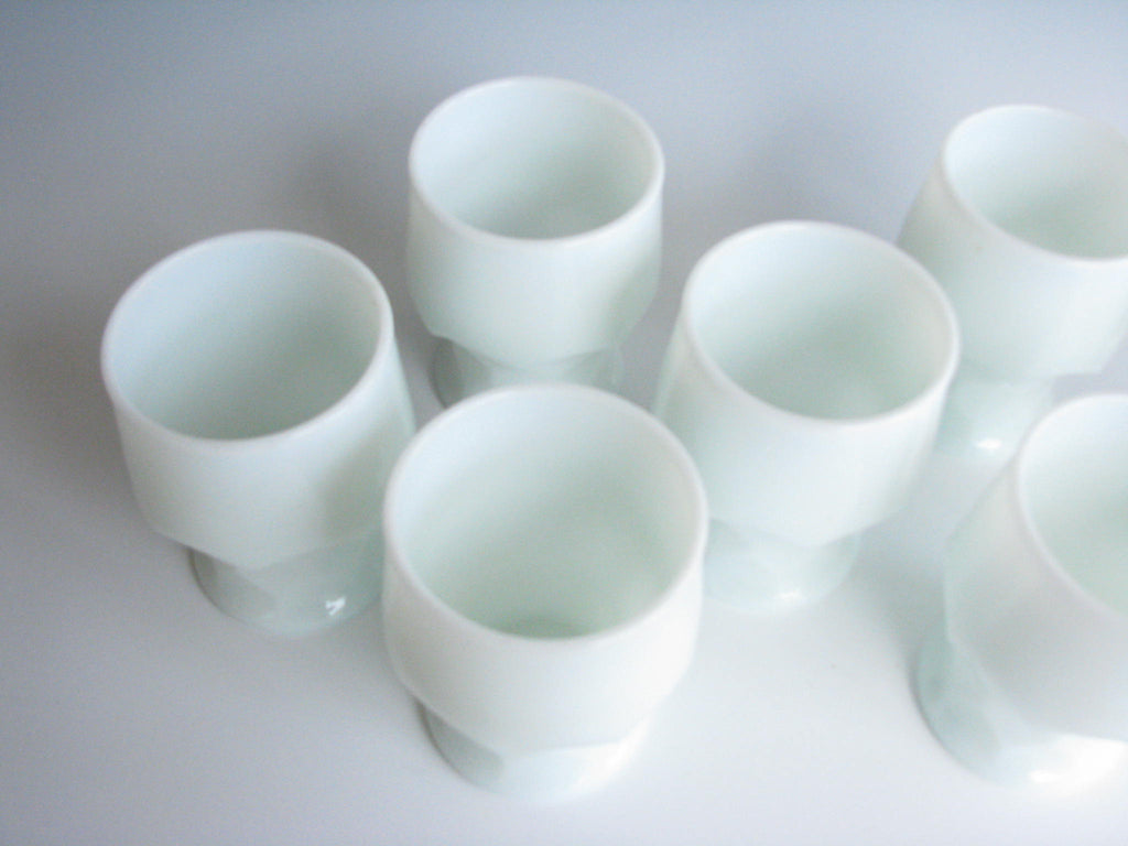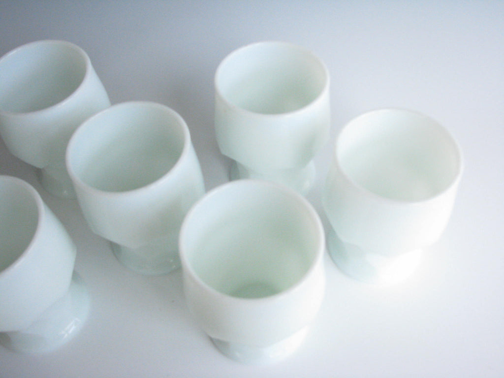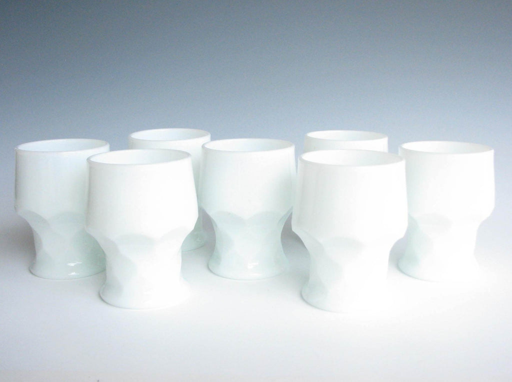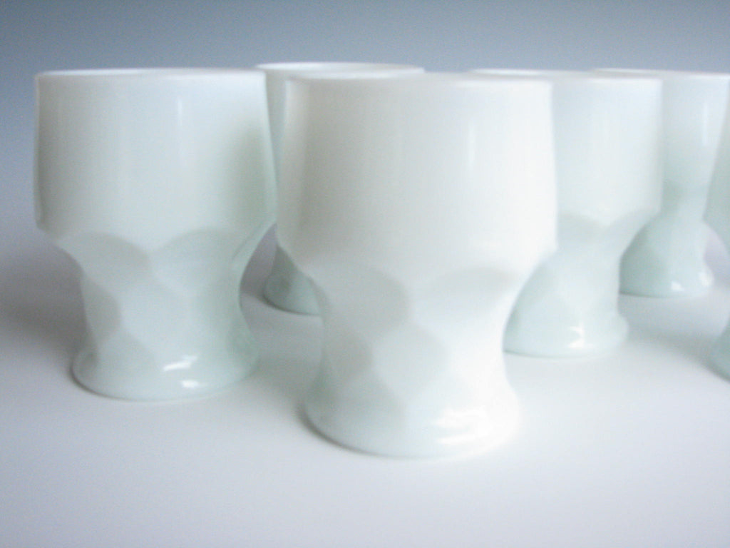 Set of 7 Viking Georgian opalescent white milk glass glasses with a very subtle hint of green (please see photos).