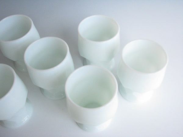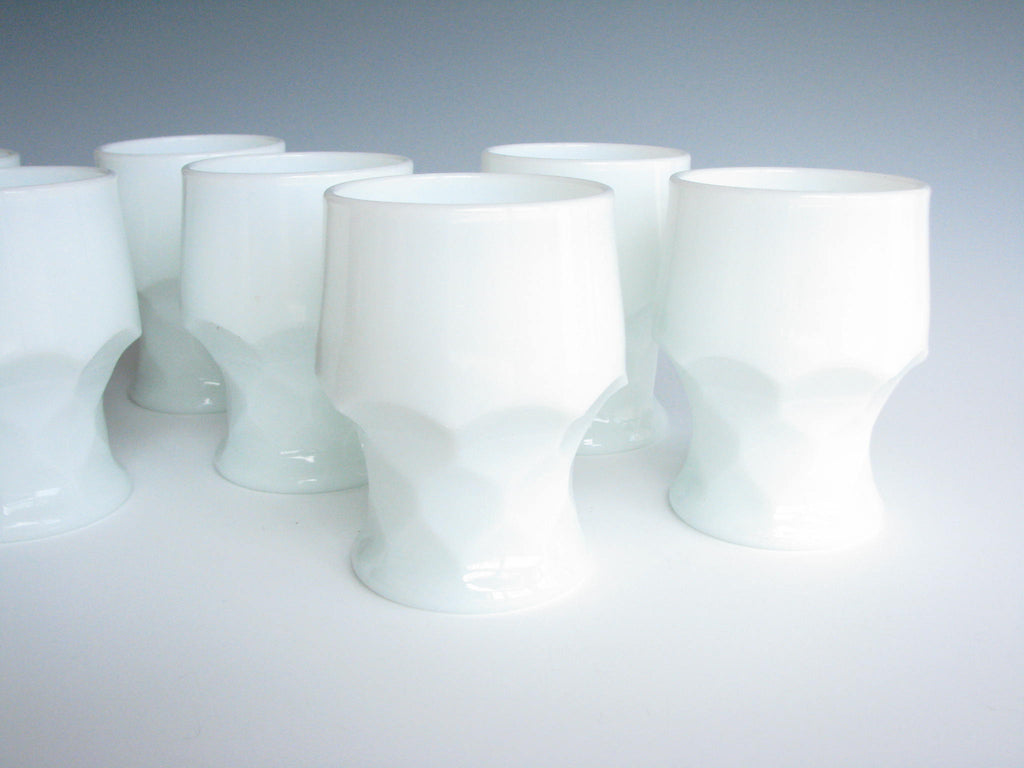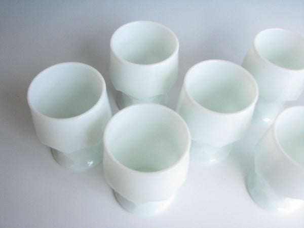 1960s Viking Georgian Opalescent White Milk Glass Glasses with Slight Green Tint - Set of 7