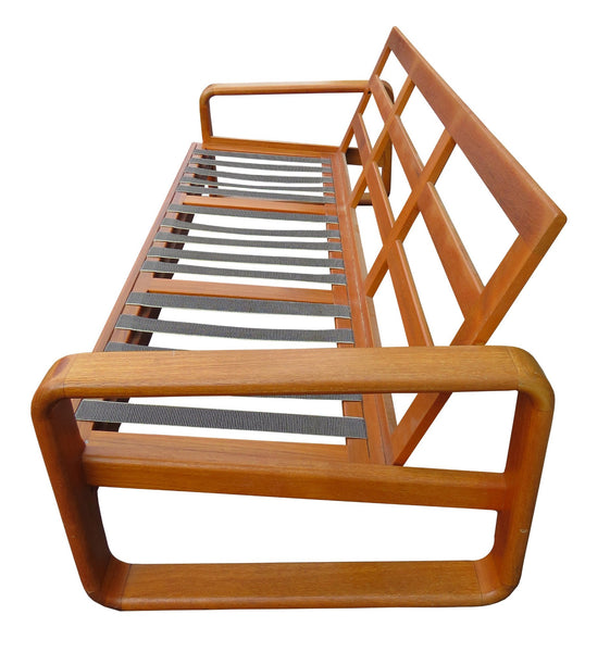 1970s Vintage Danish Sled Leg Teak Frame Settee
