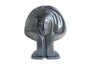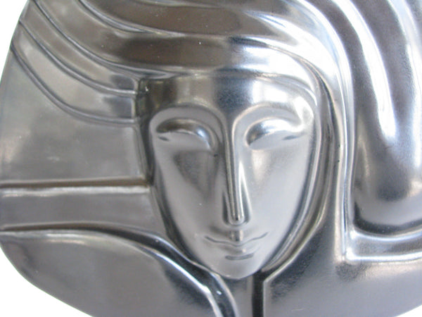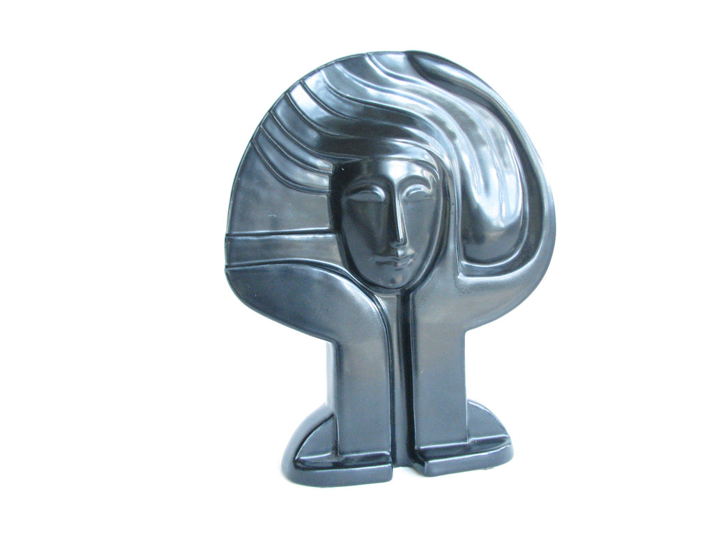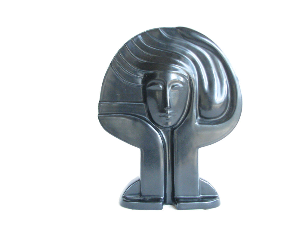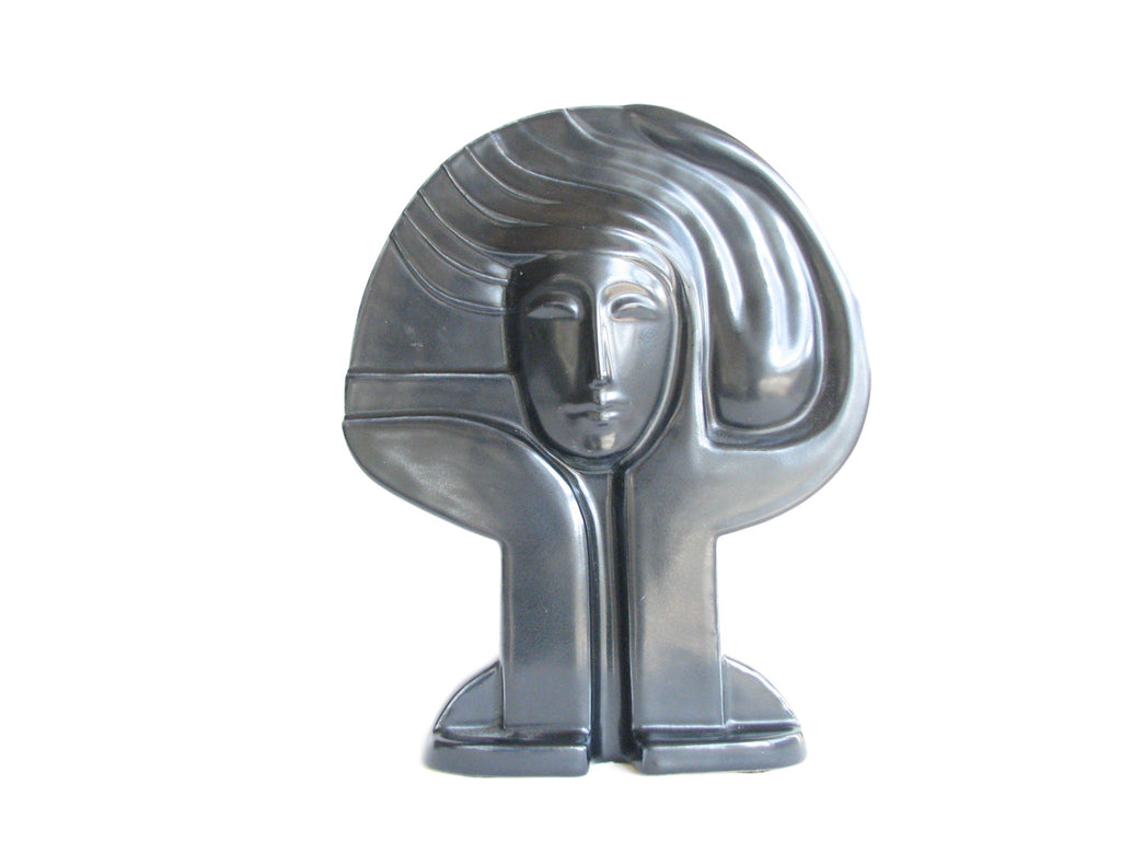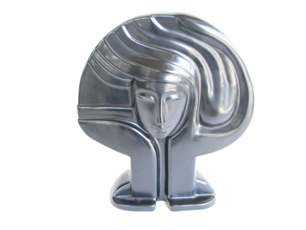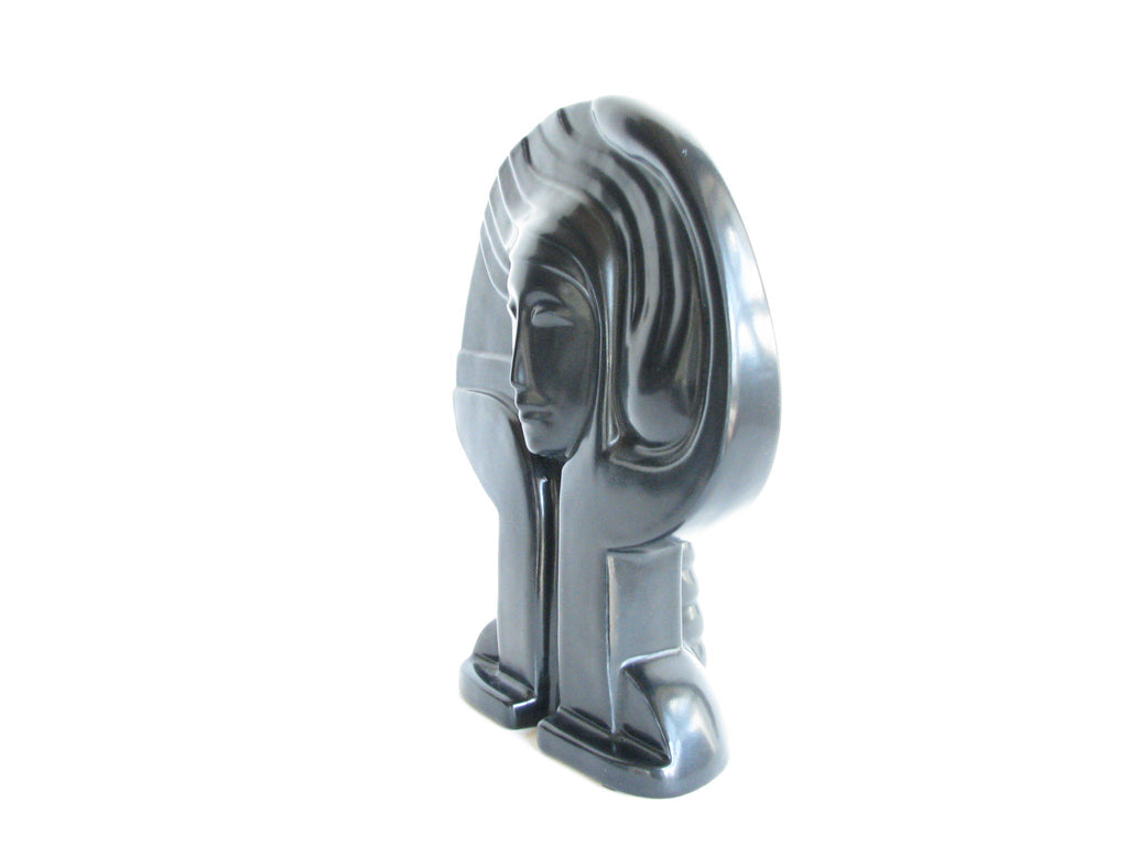1980s Art Deco Harris Potteries Black Ceramic Woman Bust Sculpture