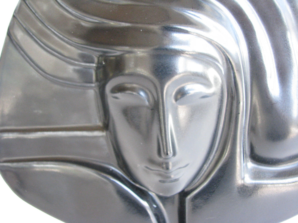 1980s Harris Potteries Chicago ceramic Art Deco style bust of a woman painted and glazed black.