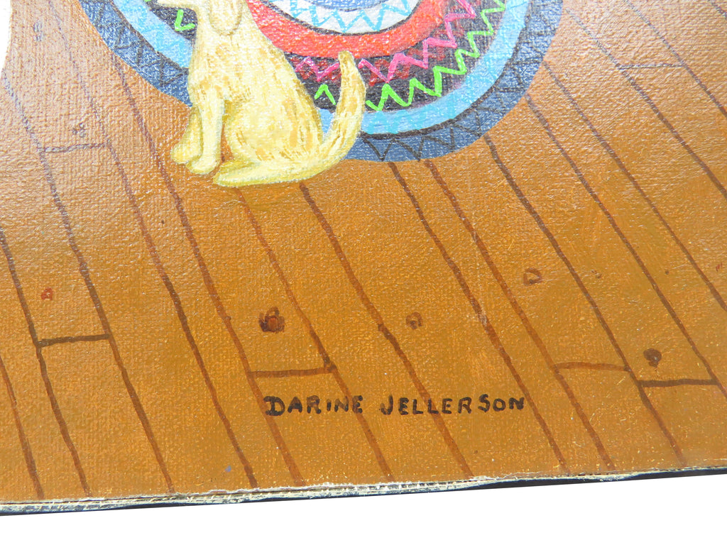 Darline Jellerson was a naif painter whose works were deeply rooted in the American folk art tradition. Although her technique appeared simple, folksy and homespun, she was actually a well-trained painter whose works were visually sophisticated. Jellerson's subjects ranged from familiar scenes of the rural American landscape and people she knew growing up to medieval princesses and Biblical scenes, all decoratively rendered with careful brushwork and a rich, varied palette. The artist had a sly sense of humor and this whimsical quality is one of the things that set her work apart from other painters who favored a primitive or naive style. Jellerson was an attractive woman with a restless spirit who traveled extensively, venturing to the south Pacific, North Africa and Europe in search of artistic inspiration and to satiate her curiosity about other cultures and ancient history.