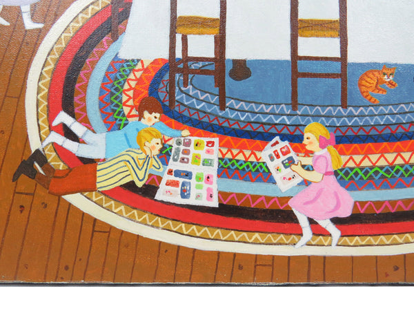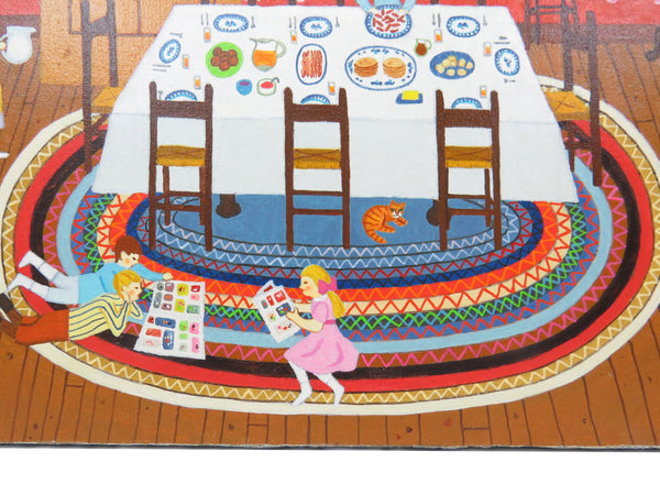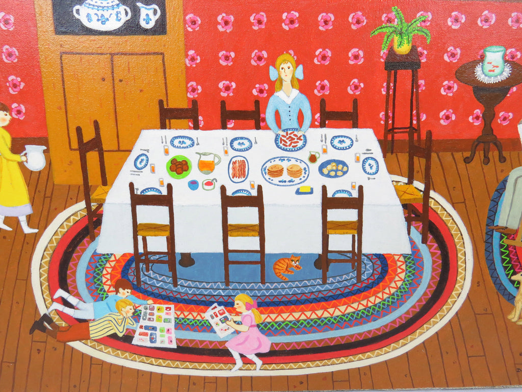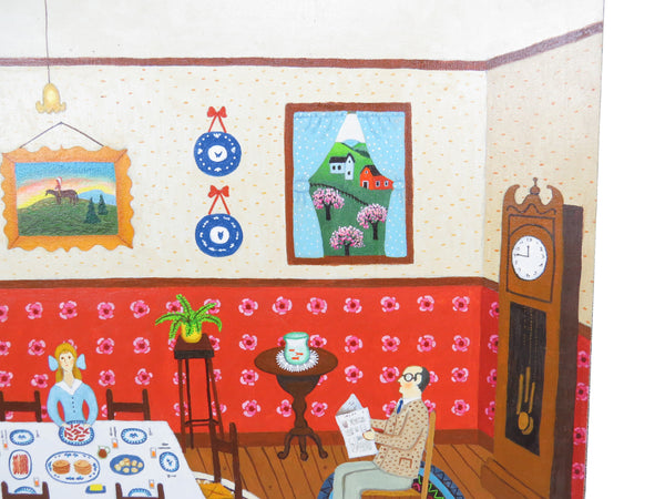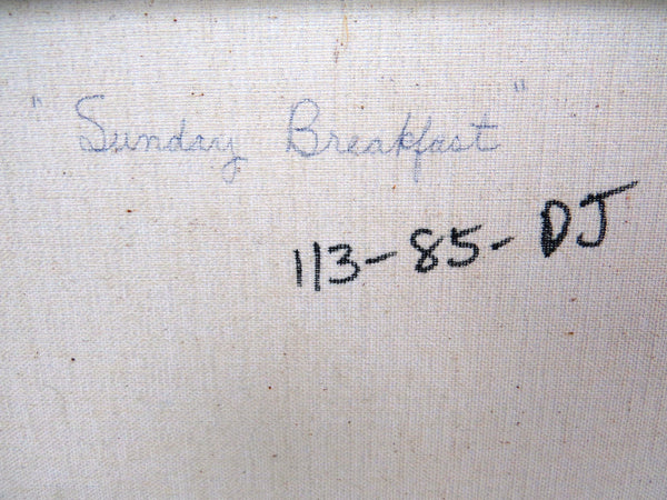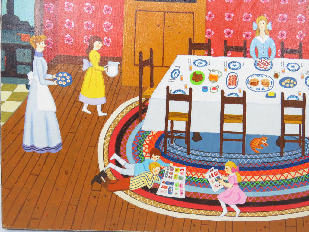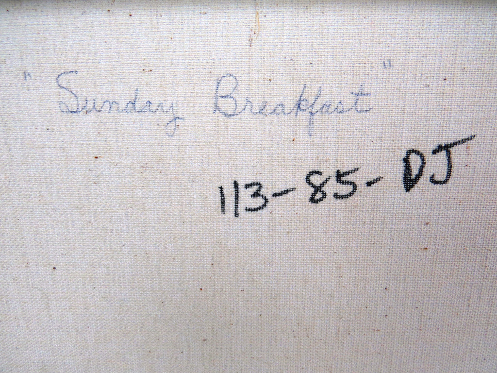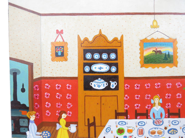1980s Darine Jellerson Folk Art Oil on Canvas "Sunday Breakfast"